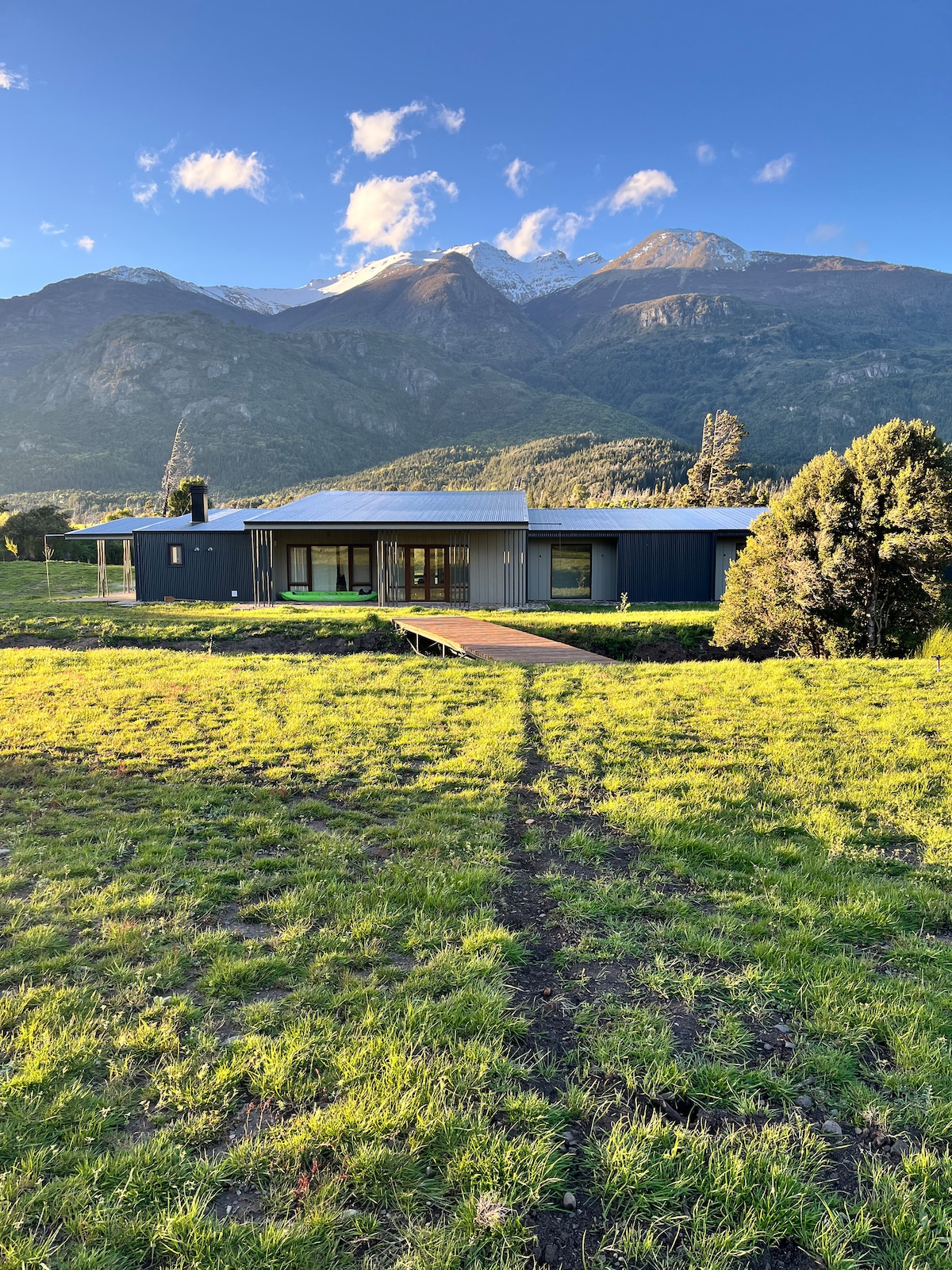 Límite Sur es un lodge de montaña en la Patagonia Argentina, a orillas del Río Grande y frente al Parque Nacional Los Alerces. Un lugar único para descansar, disfrutar del río y la naturaleza. Cuenta con acceso privado a la costa, playa privada y un arroyo que atraviesa el terreno. Ideal para familias, amigos y amantes del outdoor. Ubicado a 25 km de Trevelin.