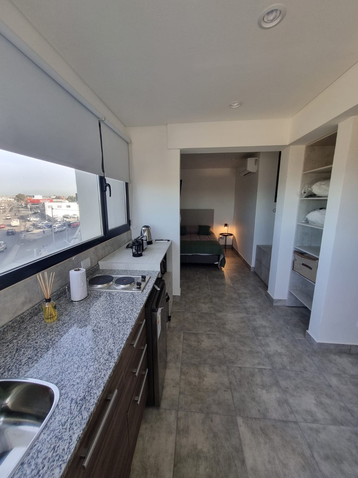 Disfrutá de la sencillez de este alojamiento moderno, tranquilo y céntrico. Departamento completo para el descanso. Incluye ropa de cama y espacio de guardado. Luminoso y con amplia vista al mar. Calefaccionado por radiadores y aire acondicionado (unidad sin gas natural). Cocina kitchenette completa, cafetera, microondas, tostadora y pava eléctrica. utensilios y batería de ollas para cocinar. Barra y banquetas de altura. Moderno baño calefaccionado.