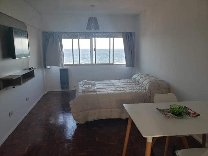 Hermoso monoambiente con vista al mar a solo 10 minutos del centro de la ciudad de Puerto Madryn, y a 15 minutos de las playas mas concurridas de la misma; con parrilla y pileta para uso, en agradable complejo habitacional.