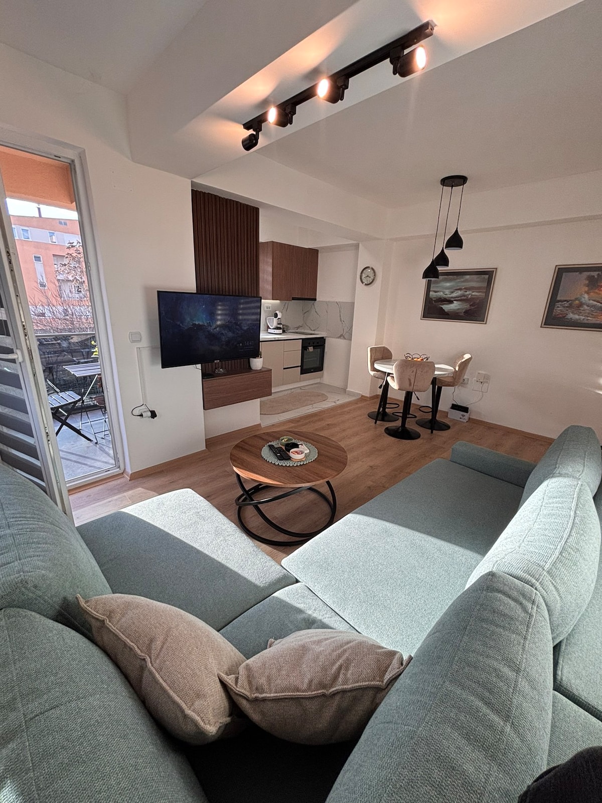 Welcome to the Organic Design Retreat in the Heart of Skopje Step into a cozy, light-filled space where warm wooden textures blend with soft white surfaces and beautifully preserved old walls. Nestled in the strict city center, the apartment is surrounded by Skopje’s most charming cafés, museums, and iconic attractions. A calm, authentic retreat designed for travelers who want to explore the city and still feel completely at home ✨