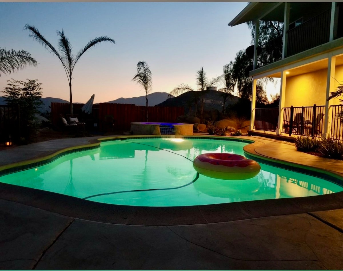 ☀️Welcome to your luxurious San Diego getaway! ☀️ This spacious 5-bedroom, 2-bathroom 2-level home is perfect for groups and families. Dive into the sparkling blue pool, unwind in the 6-person hot tub, or relax in the cozy outdoor seating areas. Enjoy stunning views from the balcony overlooking the pool, perfect for sunsets. With a central location, plenty of space to relax, and a mix of comfort and elegance, this home is ideal for exploring or unwinding on your San Diego adventure!