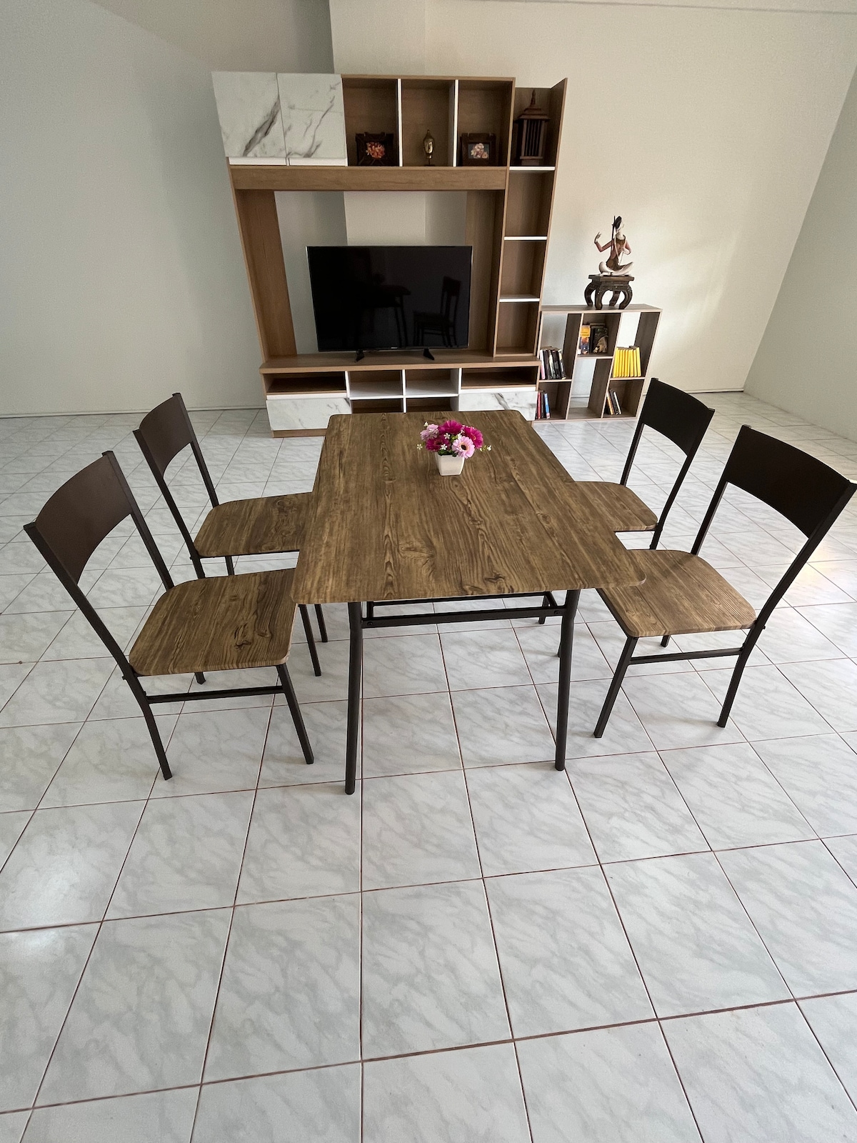A spacious vacation home, ideal for a relaxing getaway, comfortably accommodates up to 6 guests. The ground floor boasts a large flat-screen TV and a pool table for entertainment. A fully equipped kitchen allows for home-cooked meals, while complimentary kayaks offer the perfect way to explore the nearby waters. Just a short walk away, a charming café awaits for a cozy coffee break. 🍃☕️ บ้านพักหลังใหญ่เหมาะกับการพักผ่อน สามารถพักได้ 6 คน ชั้นล่างมีทีวีจอใหญ่ และโต๊ะพลู สามารถประกอบอาหารได้ และมีเรือคายักให้พายฟรี
