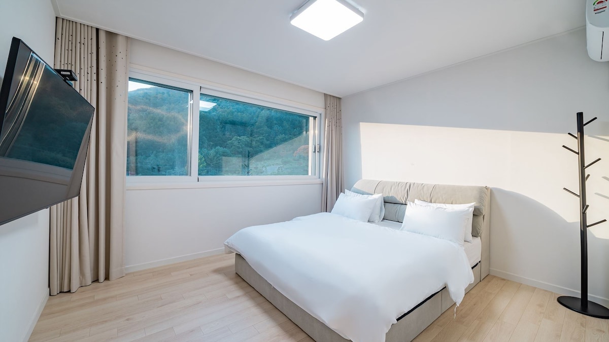 안녕하세요. 저희는 다양한 휴식 공간을 연구하고 제공하는 Onda입니다. 이 곳에서 머무르실 모든 분들께서 편안하고 행복한 시간을 보내기를 바랍니다. [숙소 소개] 자연 속 아이들을 위한 공간을 모토로 준비한 숙소입니다. 야외 온수 대형 수영장, 개별 온수 수영장, 개별 전기그릴 바비큐장, 루프탑 카페, 무인편의점등 다양한 부대시설과 함께 아이와 함께 즐기는 멋진 휴일을 완성해보세요. [객실 유형] 분리형 : 거실+주방+침실A(패밀리1)+침실B(킹1)+화장실2 * 침구는 예약하신 인원에 맞게 제공됩니다.