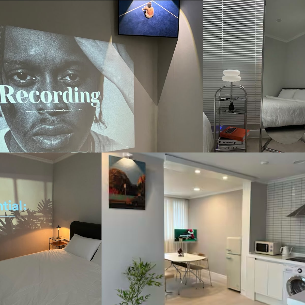 저희 숙소는 청결과 위생에 최고로 자신있는 숙소이며 호텔식 침대와 침구류로 편안하고 아늑하며 모던한 감성으로 인테리어 한 숙소입니다 도보 2분내 대형마트가 있고 교통편이 편리하여 접근성이 좋습니다 숙소 거실&주방,방1개 퀸사이즈 호텔식 침대, 원형 테이블 46인치TV 넷플릭스가능 주방 하이라이트,전자레인지,커피포트,네스프레소커피머신, 냉장고,냄비,프라이펜,수저세트,기본양념, 웰컴캡슐, 생수 제공 침구류는 매일 세탁,건조하며 수건은 인당 2장씩제공 화장실 샴푸,린스,바디워시,치약,비누,드라이기,고데기 비치 주의사항 실내 금연 숙소입니다 22시 이후 소음에 주의해주세요 체크아웃은 오전 11:00 이며 시간을 지켜 주시면 감사하겠습니다 사용하신 주방용품 설거지 후 퇴실 하셔야됩니다 예약된 인원 외 외부인 출입을 금지합니다 파손 및 심한 오염은 별도 요금이 청구 될수 있습니다 *유아동반 4인가족시 문의주세요* 오롯이 게스트님을 위한 깔끔하고 쾌적한 공간에서 좋은시간 보내세요♡