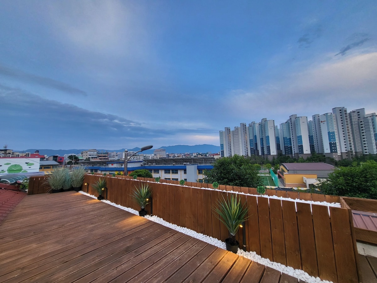 带露天座位的春川市民宿