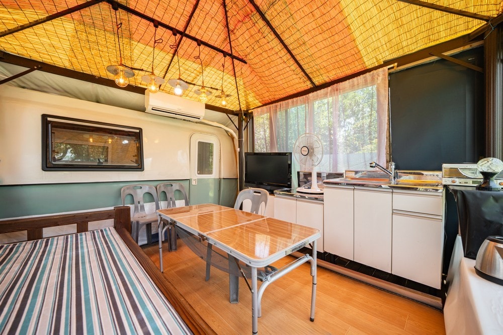 ‘미대륙을 횡단한 락우드 카라반에서 특별한 힐링을 경험하세요!’ *나무로 우거진 숲이 있는 앞 마당에 오직 한 대의 카라반만 있습니다. 조용한 휴식을 원하는 분들께 안성맞춤입니다. ———————————————— 내부를 거의 개조하지 않아 미국식 오리지널 카라반의 정취를 물씬 느낄 수 있습니다. 주변의 푸른 녹음으로 둘러싸여진 카라반 안에서 좋아하는 음악을 들으며 갓내린 커피향을 맡고 있으면 마치 미국의 시골을 돌아다니다 풍경 좋은 곳을 발견하여 차박을 하는 것 같은 느낌을 받으실 겁니다. 날이 좋으면 좋은대로 비가 오면 운치있게 테라스에 앉아 딱다구리 소쩍새가 우는 자연의 경치를 즐겨보세요. 밤하늘의 별을 보면서 자연과 교감하는 경험을 해보세요. 숲 속의 작은 카라반은 캠핑의 자유로움과 내 집 같은 안락함을 함께 느낄 수 있는 공간입니다. 혼자 오셔서 조용히 책을 읽거나 음악을 들으셔도 좋고 반려견, 연인, 가족과 함께 오셔도 좋을 곳입니다.