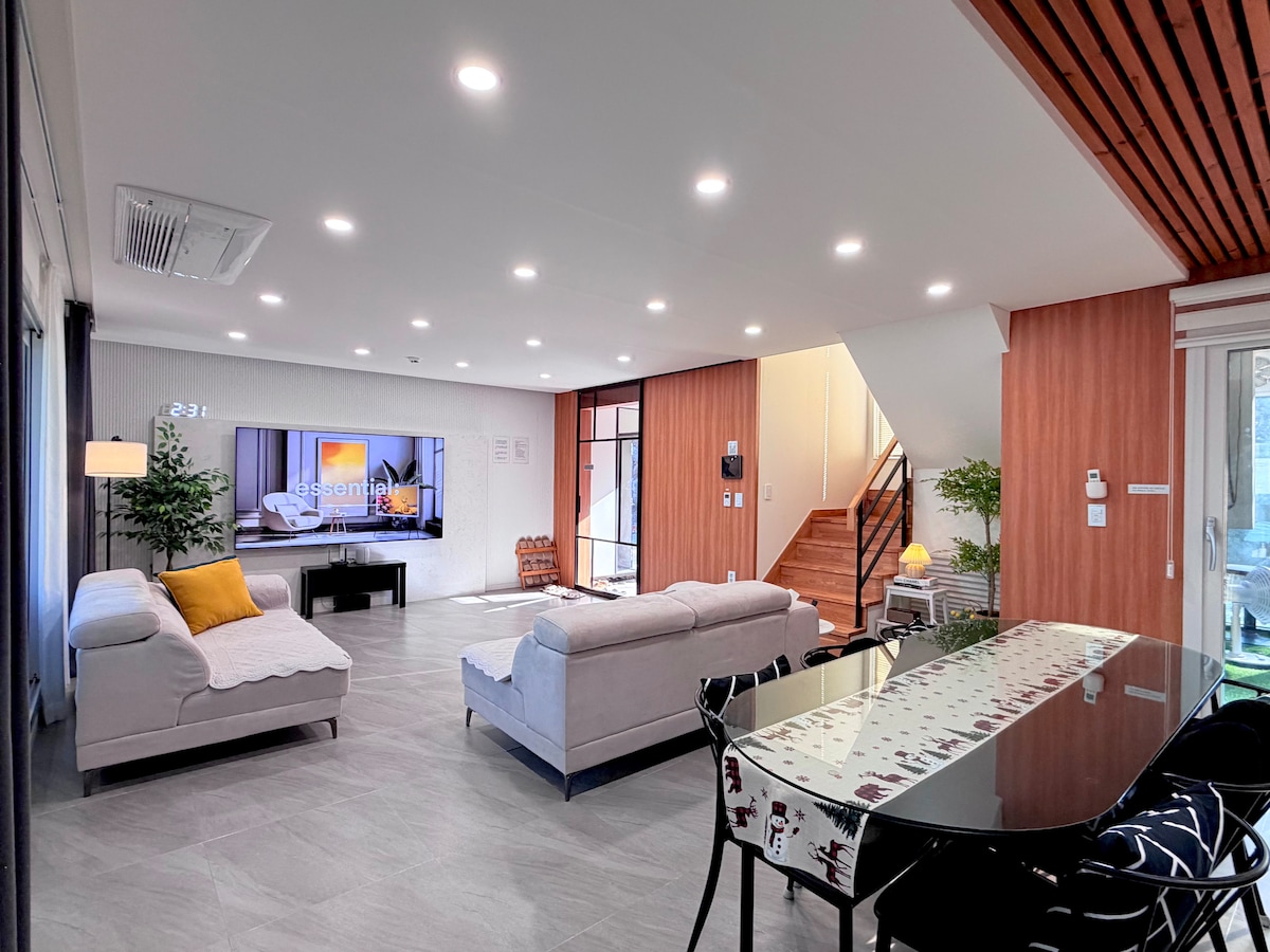 DARAK_ Designer's House of Korean Heritage with Western aesthetics ๐Less than 5m,๐10-12mins walk from exit 2, Unseo (์ด์/ไบ่ฅฟ / ้ฒใฆใณ่ฅฟ)Station, the closest one to Incheon Airport ๐ From airport to the house, taxi costs around KRW 13,000~16,000($10), 12km 10 mins ๐ก Private Whole house ๐ฒNatural wood wall finish ๐บ UHD TV & BOSE Speaker ๐ 4 bedroom ๐ฟ 3 bathroom ๐ชดRooftop ๐ฟNetflix Eungol Cafe street, good eats near by Convenient approach to Paradise Hotel Casino, Inspire Arena & Casino