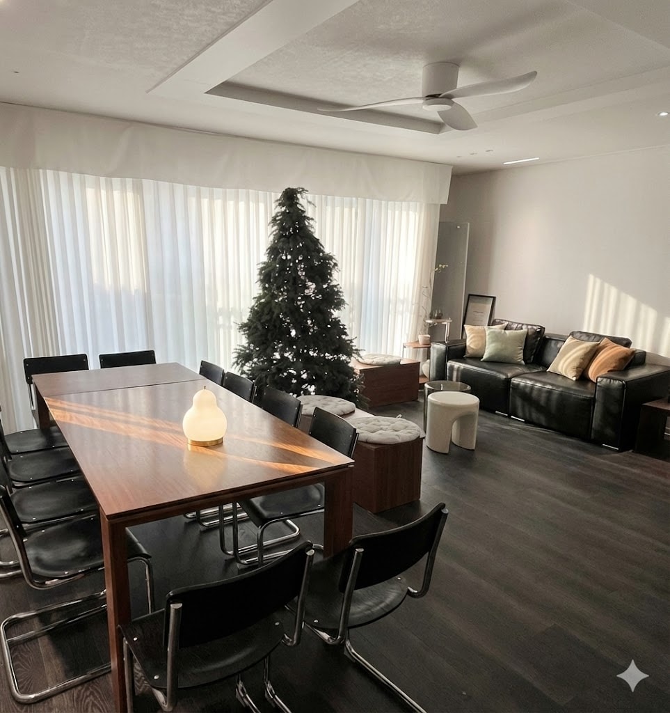 고즈넉한 멋이 깃든 신축 한옥, 그 속에 시간이 켜켜이 쌓인 빈티지 우드가 더해져 깊은 분위기를 자아냅니다. 반듯하게 다듬어진 구조 속에 자연스럽게 녹아든 오래된 나무의 결은 공간에 따뜻한 온기를 불어넣고, 현대적 감각과 전통미가 절묘하게 어우러진 인테리어는 보는 이의 시선을 사로잡습니다. 2층으로 올라서면 전혀 다른 세계가 펼쳐집니다. 이국적인 발리 스타일을 모티프로 한 테라스와 자쿠지가 마련되어 있어, 도심 속에서도 마치 휴양지에 온 듯한 여유로움을 만끽할 수 있습니다. 자연 소재의 가구와 부드러운 톤의 섬유 소품들, 그리고 초록 식물들이 어우러진 이 공간은 몸과 마음을 쉬게 하는 진정한 힐링의 장소입니다. 과거와 현재, 동양과 이국의 감성이 조화롭게 녹아든 이 한옥은 단순한 집을 넘어, 머무는 이에게 특별한 경험을 선사하는 공간입니다.