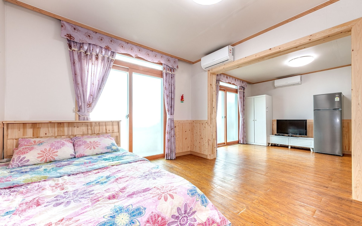 원룸형 객실 (약 7평) 최대 2명(성인 최대 2명,어린이 포함 2명까지 가능 / 성인 2명+어린이 1명 등 인원 초과시 이용 불가) 장기 입주 가능(가격 별도 문의) 4동을 예약하시면 1호~5호 중 랜덤하게 배정됩니다. 4동 객실은 만실시 옆 객실의 소음이 있을 수 있으니 예민하신 게스트께서는 이 점을 꼭 유념부탁드립니다. -즉시예약은 받지 않습니다. 메세지로 ※다시 한번 예약 확인※ 부탁드립니다. -기준 인원 초과 시 1인당 2만원의 추가요금이 부과되며, 예약 인원 초과 시 입실 및 환불이 불가합니다. 입실 시간은 오후 2시부터 오후 8시까지이며 퇴실 시간은 오전 11시입니다. ※인원 변동이나 기준 시간 외 이용 시 미리 연락 주시기 바랍니다. -다른 이용객들의 편의와 위생을 위하여 반려동물의 동반입실시 추가 요금을 받고 있습니다. 미리 동반입실 여부를 알려주시면 1마리당 5만원의 별도 청소비용을 안내드리고 있으며, 각종 안전 사고에 각별히 주의 부탁드립니다.
