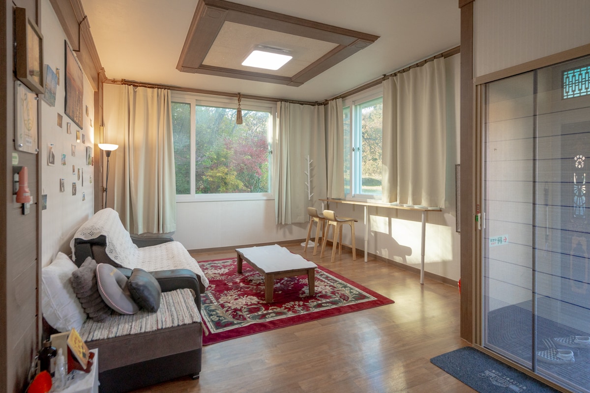공유한옥은 전주인근 청정지역 완주군에 위치한 온 가족이 머물기에 적합한 넓은 독채로 운영되는 한옥숙소입니다. 모든 사람이 지쳐있는 시기에 공유는 여러분에게 자연 속에서 온전하고 평화로운 쉼을 제공합니다. 프라이빗한 장소와 즐길거리가 가득한 완주에서 전통한옥이지만 불편함을 없애고 트렌디한 공간을 만들었습니다. 가족, 연인, 친구들 모두 만족스러운 추억을 만들 수 있을거라 생각됩니다. 인근에 계곡, 둘레길, 다양한 체험,먹거리, 편의시설등은 새로운 경험을 제공합니다. 한옥 공유는 여러분을 기다리겠습니다.
