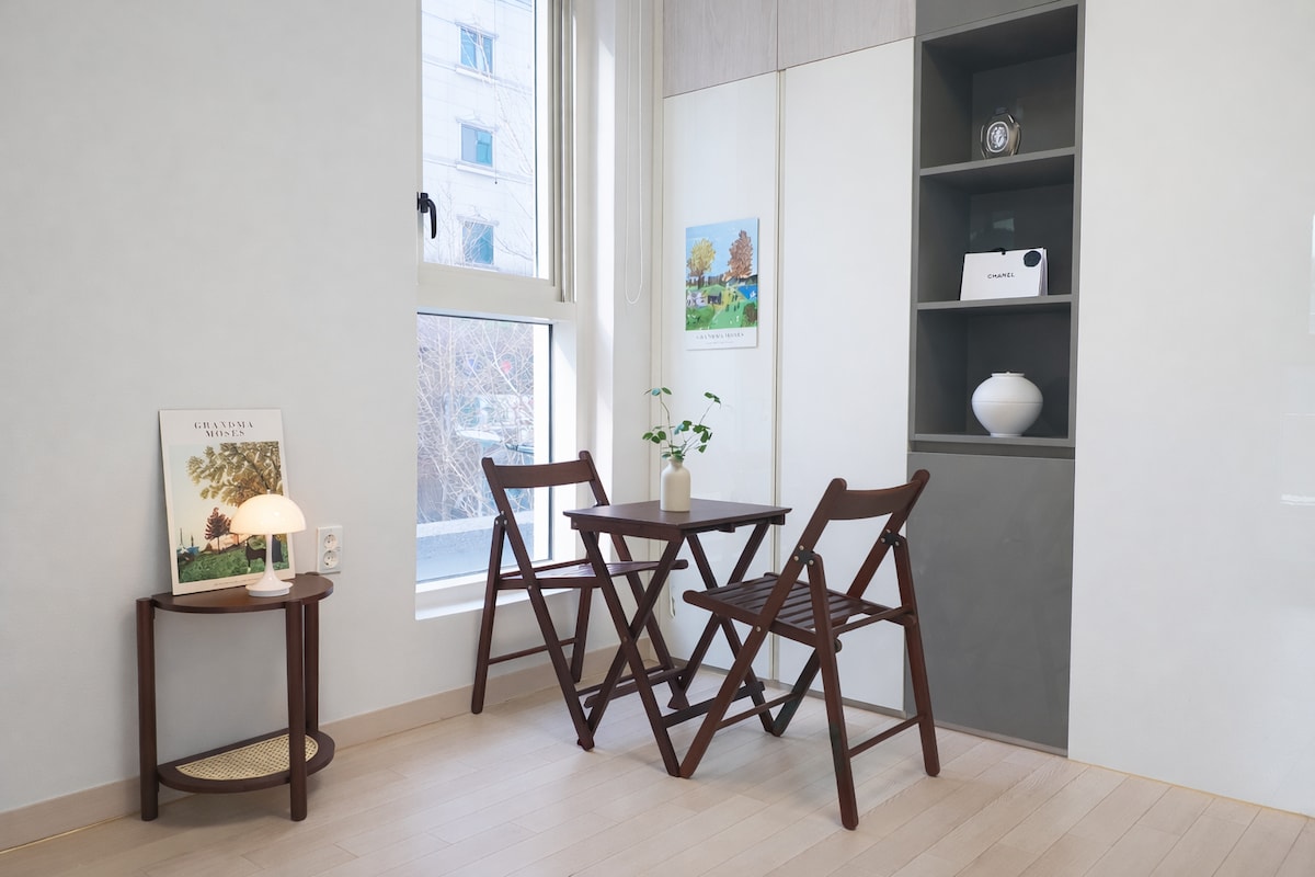 ๋์ ๋์ฐ๋ ๊ฐ์ฑ์์ ์คํ ์ด๋์ฐ์ ๋๋ค. -์์ฒญ์ญ/์ ๋ถ์ฒญ์ฌ์ญ ๋๋ณด 5๋ถ -๊ฐค๋ฌ๋ฆฌ์ ๋๋ณด 4๋ถ -๋์ ์์ฒญ ๋๋ณด 3๋ถ -์์ง๋๋ณ์ ๋๋ณด 4๋ถ -ํธํ ์นจ๊ตฌ๋ฅผ ์ฌ์ฉํ์ฌ ํธ์ํ๊ฒ ์ฃผ๋ฌด์ค ์ ์์ต๋๋ค. -์นจ๊ตฌ๋ ๋งค์ผ ์๋ก ๊ต์ฒดํ๊ณ ์์ต๋๋ค. -์ ์๊ธฐ,์ธํ๊ธฐ,์ท์ฅ ๋ฑ์ด ์ค๋น๋์ด ์์ด ์ฅ๊ธฐ์๋ฐ ์ ํธ์ํ๊ฒ ์ง๋ด์ค ์ ์์ต๋๋ค. -ํ์ฅ์ค์๋ ์ดํธ, ์ปจ๋์ ๋, ๋ฐ๋์์, ์๊ฑด, ์นซ์, ์น์ฝ, ํผํด๋ ์ง, ๊ณ ๊ธ ํค์ด๋๋ผ์ด์ด, ๊ณ ๋ฐ๊ธฐ ๋ฑ ์ค๋น๋์ด ์์ต๋๋ค. -์ฃผ๋ฐฉ์๋ ๋์ฅ๊ณ , ์ ์๋ ์ธ์ง, ์ปคํผํฌํธ, ๋ฌผ, ๋๋ง,์๊ธฐ๋ฅ, ์์ธ์ ๋ฑ ์ค๋น๋์ด ์์ต๋๋ค. -๊ฑฐ์ค (TV/๋ฌด๋ฃ ๋ทํ๋ฆญ์ค ๊ด๋๊ฐ๋ฅ) -์๋ฆฌ๋ฒ ์ดํฐ๊ฐ ์๋ ์ ์ถ๊ฑด๋ฌผ์ ๋๋ค. -์ฃผ์ฐจ๋ ์ฅ๊ธฐ ์๋ฐ ๊ณ ๊ฐ๋๋ง ์ฃผ์ฐจ๋ฑ๋ก ํด๋๋ฆฌ๊ณ ์์ผ๋ฉฐ, ๊ทธ ์ธ์๋ ๊ฑด๋ฌผ ์ฃผ๋ณ ๊ณต์์ฃผ์ฐจ์ฅ์ ์ฃผ์ฐจํ์ ์ผ ํฉ๋๋ค.(๊ณต์์ฃผ์ฐจ์ฅ ํ์ผ: ์คํ8์-์ค์ 10์ ๋ฌด๋ฃ/์ฃผ๋ง: ๋ฌด๋ฃ) -์๋ฐํ์ธ์ ์ ๊ณต ๊ฐ๋ฅํฉ๋๋ค.
