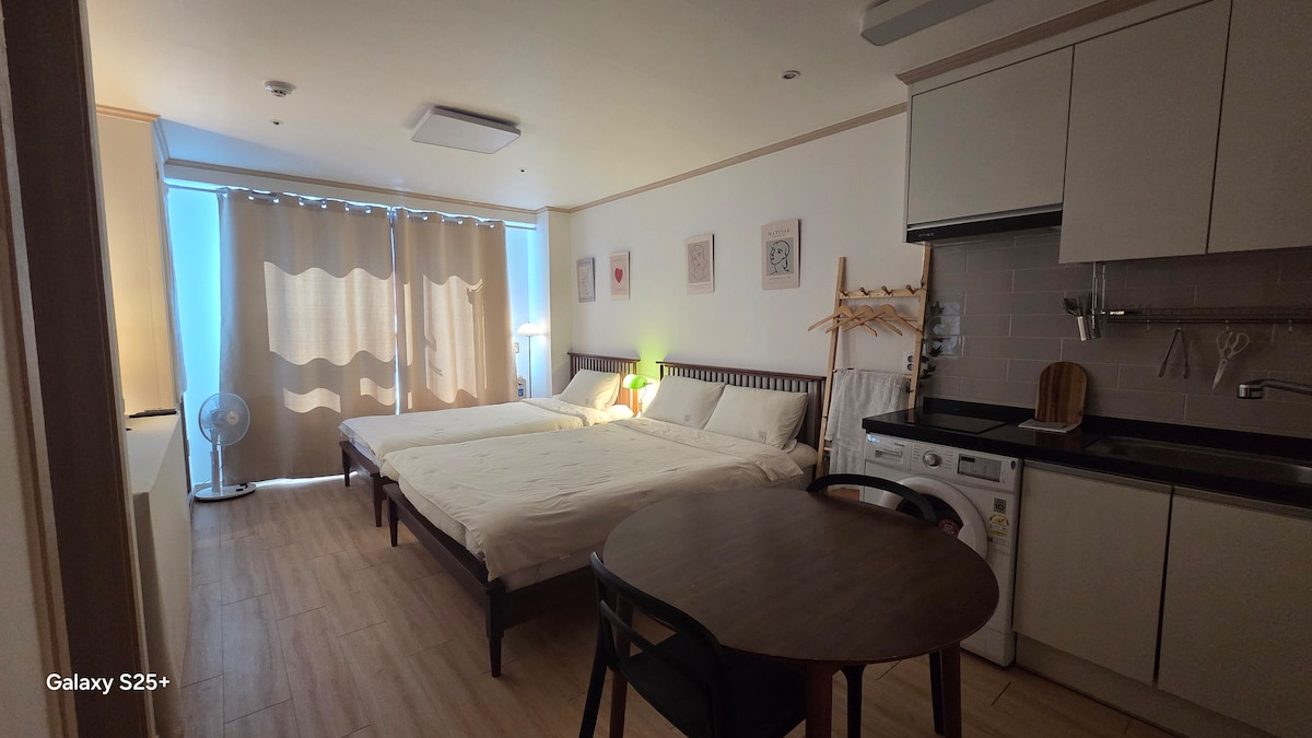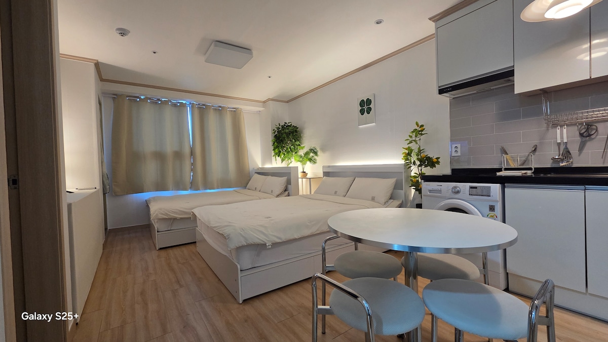 ๐ ๋์ ์ฌํ์ ์ค์ฌ, ์ต์ ์ ์ ์ง * ์ค์๋ก ๋๋ก๋ณ์ ์์นํ์ฌ ๋ฐค๋ฆ๊ฒ ์ค์ ๋ ์์ * ์ค์๋ก์ญ6์ถ๊ตฌ ๋๋ณด 2๋ถ, ๋์ ์ญ์์ ์์ ์ ๊ตฌ๊น์ง ์งํ์๊ฐ๋ก ์ฐ๊ฒฐ * ์ฑ์ฌ๋น, ๊ด์ฒ์๋น, ์ค์์์ฅ, ๋ํฅ๋ ์์ ์ง๊ตฌ๊ฐ ๋ชจ๋ ๋๋ณด 5~10๋ถ๊ฑฐ๋ฆฌ * ํํ์๋ช ์ด๊ธ์คํํฌ๊น์ง ์ฐจ๋์ผ๋ก ๋จ 5๋ถ ๊ฑฐ๋ฆฌ! ๐ ์ฃผ์ฐจ ๋ฐ ์ด์ฉ์๋ด * ์์ ๋ด ํ์ ์ฃผ์ฐจ์ฅ์ ํฌ์๊ฐ ์ด์ฉ์ด ๋ถ๊ฐ * ์ธ๊ทผ ์ ๋ฃ ์ฃผ์ฐจ์ฅ ์ด์ฉ ์ 1์ผ ์ต๋ 1๋ง ์๊น์ง ์ง์ (๋ฌธ์๋ก ๋ฌธ์) * ์ฒดํฌ์ธ์ ์ง ๋ณด๊ด ๊ฐ๋ฅ(๋น์ผ ๋ฐ์ก๋๋ ์๋ด๋ฌธ ์ฐธ์กฐ) ๐ฟ ๊ตฌ๋น ํ๋ชฉ * ์์ค/์ด๋ฉ๋ํฐ: ๋ฐ๋ํด๋ ์ , ์ดํธ, ๋ฆฐ์ค, ๋๋ผ์ด๊ธฐ, ๊ณ ๋ฐ๊ธฐ * ์ผํ์ฉํ:์น์ฝ, ์นซ์, ๋ฉด๋๊ธฐ, ๋น๋, ์ค์ํ์ฌ, ์์ ์ ๊ณต * ์๊ฑด: 1์ธ๋น 1๋ฐ๋น 2๋งค์ฉ ์ ๊ณต * ๊ฐ์ : ์ค๋งํธ TV, ์ฑ์ฌ๋น์๋ฃจ 2๊ฐ๋ ๊ฑฐ๋ฌํ ๋์ฅ๊ณ โ ๏ธ ๊ผญ ์ง์ผ์ฃผ์ธ์ (์ด์ฉ ์์น) * ์ค๋ด ํก์ฐ ๋ฐ ๋ฐ๋ ค๋๋ฌผ ๋๋ฐ์ ์ ๋ ๊ธ์ง * ํ์ฌ ๊ฒฝ๋ณด๊ธฐ ์๋ ์ฐ๋ ค๋ก ๊ณ ๊ธฐ, ์์ ๋ฑ ์ฐ๊ธฐ ๋ฐ ๋์๋๋ ๊ตฌ์ด ์๋ฆฌ๋ ๊ธ์ง