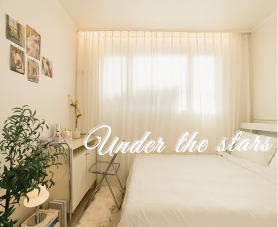 Neurujae – a 4F private stay at the end of a quiet lane near the park. Calm retreat in the city, ideal for family trips, hospital visits, concerts or running. 🏃 3 min to Ogeum Park, 15 min to Olympic Park – loved by joggers & walkers. 📍 5–7 min walk to Ogeum/Bangi stations, 4 min to Airport Bus 6300. 10 min drive to Jamsil 🛏 2 bedrooms (Queen + Super Single each, sleeps 6). Extra topper for 7–8 guests. 🚫 4F walk-up, no elevator. Contact host if carrying heavy luggage.