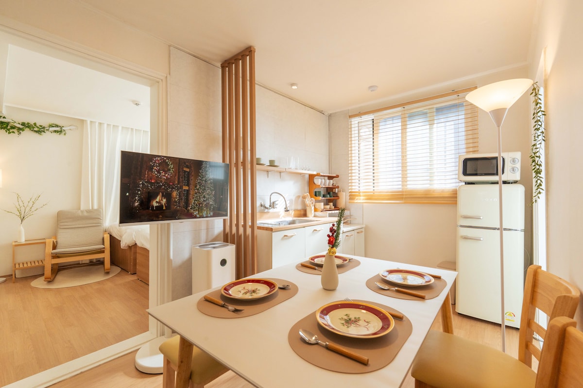 ✨ 천호역 3분, 서울 여행의 중심에서 만나는 작은 휴식 공간 ✨ 서울을 여행할 때 이동이 편한 숙소는 하루의 피로를 가장 먼저 풀어주는 선물 같은 존재입니다. 이 숙소는 5·8호선 천호역에서 도보 3분 거리에 있어 서울 어디든 빠르고 편하게 이동할 수 있는 완벽한 위치를 자랑합니다. 신축 건물에 엘리베이터가 있어 병원 방문객이나 여행객 모두 짐 걱정 없이 편안하게 이용할 수 있습니다. 문을 열면 따뜻한 조명과 우드&화이트 인테리어가 부드럽게 반겨주며, 복잡한 도시 속에서도 조용하고 포근한 분위기를 선물합니다. 또한 공항버스 6200번 정류장이 도보 7분 거리에 있어 인천공항 이동도 무척 편합니다. 캐리어를 끌고 오르막을 오를 필요도 없어 여행의 시작과 끝이 한결 여유롭습니다 🎈본 숙소는 서울시 강동구로부터 외국인관광 도시민박업 허가를 받아 운영되는 합법 숙소입니다. 🎈본 숙소는 미스터멘션 특례를 적용받아 내국인 공유숙박 합법 업체로 등록되어 운영되고 있습니다.