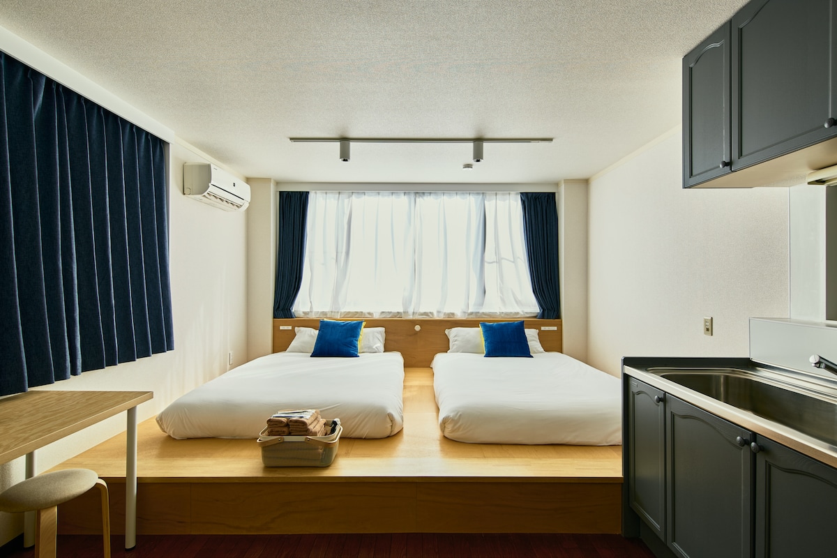位于青砥车站的这家旅馆是感受江户文化的理想住所。交通十分便利,可以乘坐京成线的特快列车直达东京晴空树、浅草、银座、上野和迪士尼乐园等热门景点。对国际旅行者来说,这是一个理想的选择。从羽田机场或成田机场到达也只需短短的44分钟或48分钟。从青砥车站步行仅需3分钟,道路平坦,易于找到。车站前有各种餐厅、超市和便利店,而且旅馆旁边还有7-11便利店。周围环境包括各种餐饮店、超市、百元店、便利店和药店,是国际旅行者的理想环境。此外,附近还有温泉设施和直达车站的巴士,让您充分享受天然温泉的乐趣 客房在2楼空间阳光充沛,提供舒适的住宿环境。此外,客房还配备了一个小型的户外阳台,让您可以在室外享受清新的空气和阳光。这个阳台是一个理想的休闲空间,您可以在这里放松身心,享受愉快的时光。但需要注意的是,由于本酒店没有电梯,因此客房位于2楼。因此,您需要使用楼梯,望您理解。