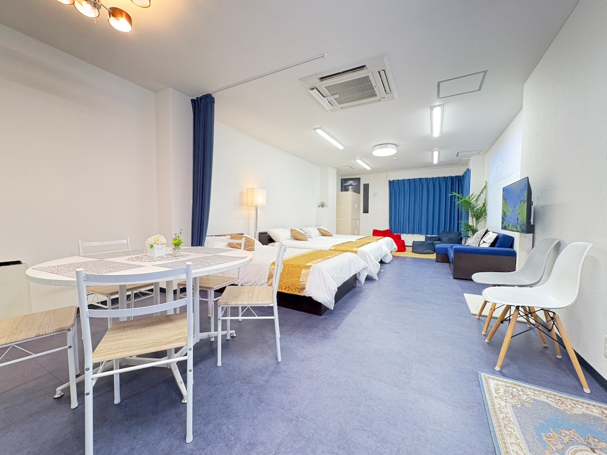 約30㎡のお部屋で、ご友人同士、ご家族同士、カップル同士のご旅行など、最大5名様まで宿泊可能です。 ※同じ建物内の部屋(別リスティング)もご予約頂ければ、最大22名様までのグループ利用にも対応可能。 <オススメポイント> ★完全貸切(他のゲストはいません) ★福岡市の中心地からアクセス抜群の好立地 ★和の趣を感じる印象的な壁紙デザイン ★まるで映画館のような大画面スクリーン ★無料高速Wi-Fi、プロジェクターをご用意 ★日本で非常に人気の高品質マットレスもご用意(心地よい眠りをお楽しみください) ★スーパー、コンビニ、飲食店、コインパーキング、銭湯などが徒歩数分圏内 冷暖房設備や生活家電、調理器具一式完備のフルキッチンなど、必要なものは全てそろっております。出張、短期・長期、さまざまな用途でご使用ください。 お値段交渉お気軽にどうぞ^ ^ ご予約お待ちしております!