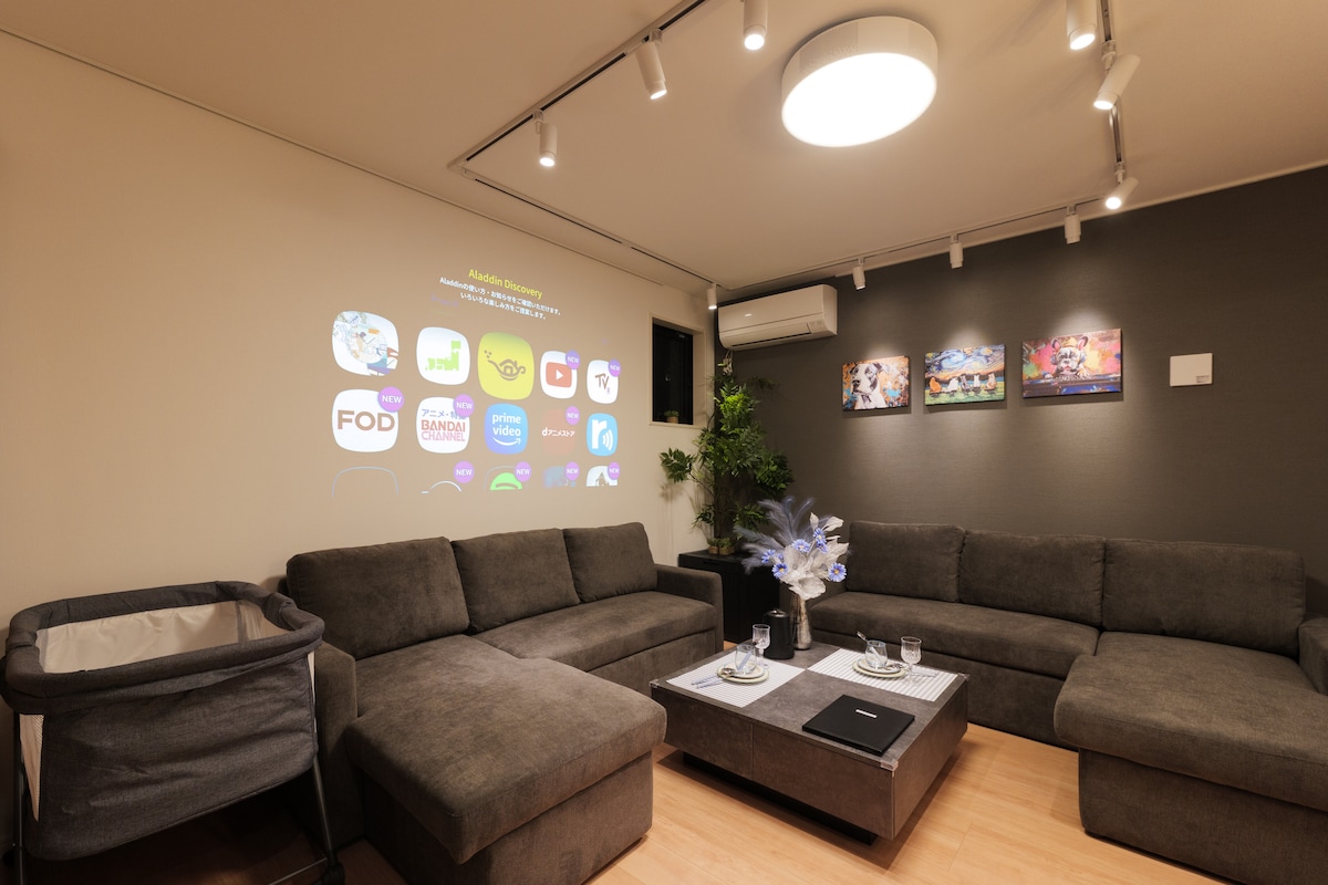 【2023年开业】福冈最大豪华宽敞的整栋出租酒店/最多19人/大屏幕电影欣赏