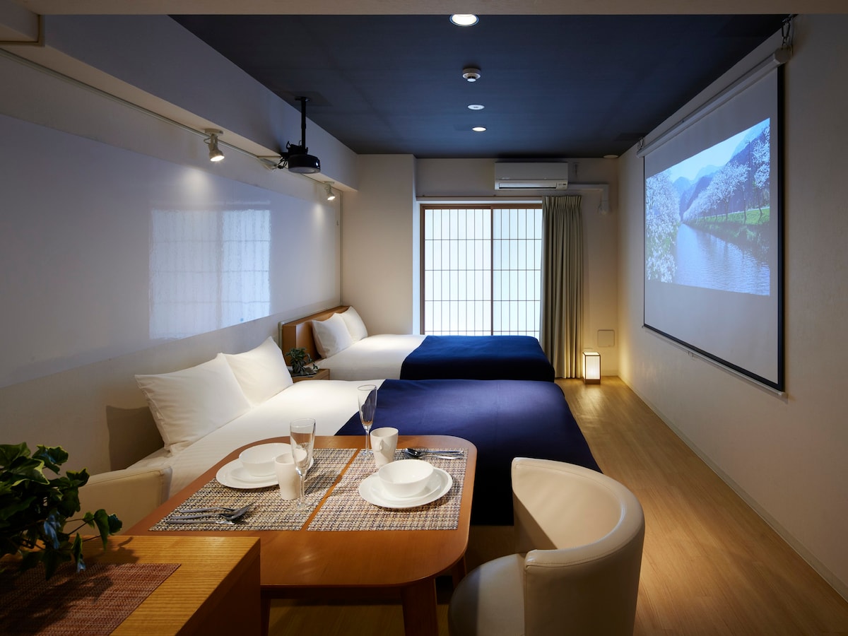The room is 46㎡ in size. It can accommodate up to 6 people. There are 2 double beds(140cm) and 2 single beds(100cm). You can cook in the system kitchen. The bathroom has a bathtub. ・Room facilities Refrigerator Microwave Electric kettle Cooking utensils Cutlery Hair dryer Washing machine TV Air conditioning ・Room Amenities Toothbrush Bath towel Face towel Slippers Shampoo Conditioner Body soap Hand/face soap ・Amenity bar Toothbrush Razor Comb Cotton swab Body towel Hair elastic Hair cap
