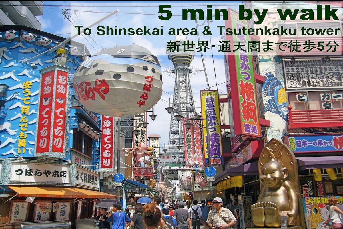 This guest house was just newly built in May 2017 and a picture of a cute dog is a landmark. It's possible to go to both of Tengachaya and Hanazonocho sta in 6mins on foot.You can go to NAMBA in 5mins and UMEDA in 14mins by train with no transfer.Tengachaya is a good place to be able to come from KIX with no transfer, and there’re many well-kept-secret restaurants,so you can enjoy!Staffs are kind and friendly,so you would like to come surely again^^Please feel free to ask anything about Osaka!!