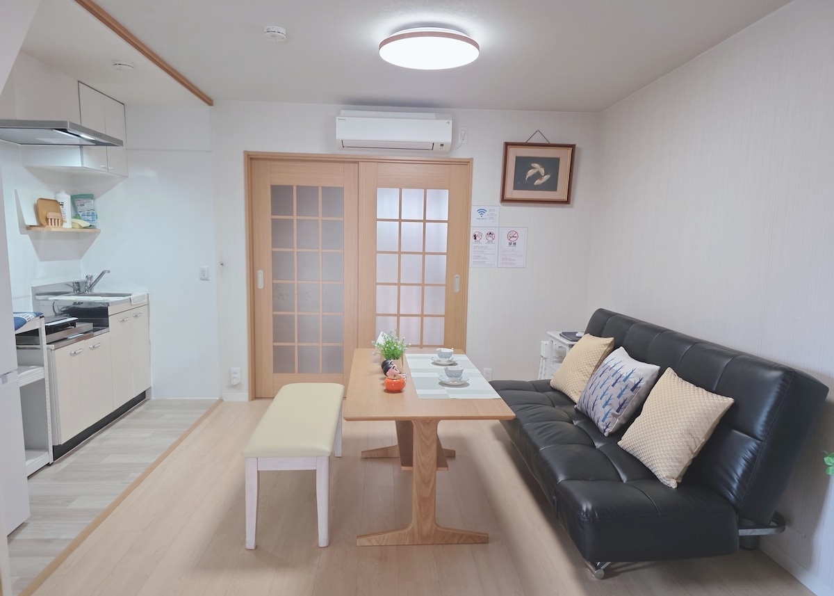 【b&難波3号店】位于大阪市浪速区,最近车站为“大国町站”,临近购物中心,距离难波相当近,交通非常便利。搭乘地铁可直达大阪各大人气景点,如道顿堀、日本桥、心斋桥、天王寺、新世界通天阁等,前往关西机场也十分方便,是探索大阪的理想据点。 周边为安静祥和的住宅区,治安良好,环境整洁,适合家庭、情侣、朋友结伴入住。步行范围内有24小时便利店、咖啡厅,生活采买十分便利。此外,附近还分布着地道的日式餐厅和老字号食堂,让您不出远门就能体验纯正的在地美食文化。 房间为室内新装修的公寓,采用现代与和风相融合的设计风格,空间宽敞,配有独立浴室与卫生间,最大适合4人同时入住。全屋配备高速Wi-Fi、浴缸、洗衣机、厨房等生活设施。 关于日本旅行的任何事情,我们也会为您热心解答!
