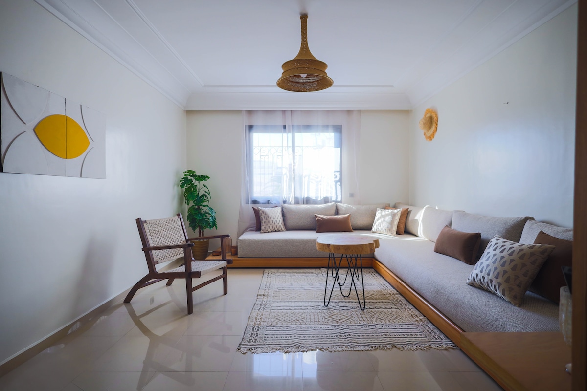 - Welcome to our scandinavian style apparamtnet with super king size bed in the center of Casablanca, decorated with love and located in one of the main neighborhoods of Casablanca where everything is nearby. Coffee shops, restaurants, supermarkets Our space is Ideal for business or leisure, our apartment is your perfect base from which to explore the bustling heart of the city,