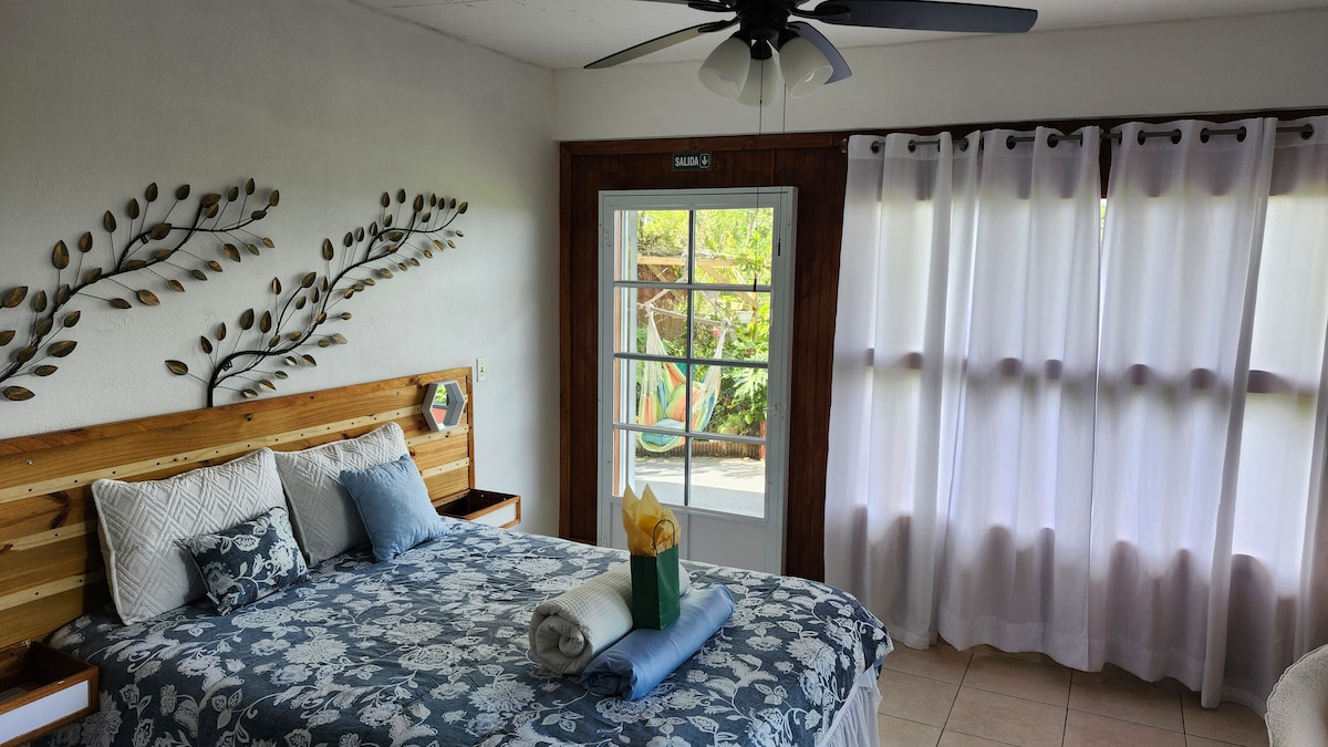 This spacious apartment is the garden floor of a two story home close to downtown Ciales where there is a Coffee Museum, organic farms, amazing caves and climbing cliffs, high peaks hiking, river swimming, and a quick drive to the Atlantic Ocean. The very clean and spacious room is equipped with ceiling fans, an outdoor heated shower, and full kitchen with large refrigerator, gas stove and oven. The owners live on site and are available to assist with check-in and all of your trip planning.