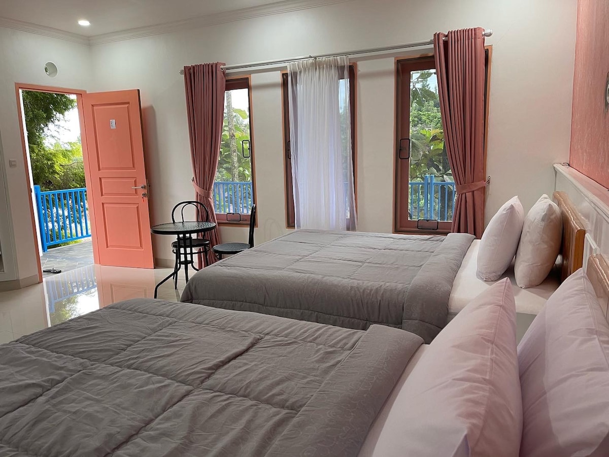 Relax, unwind, or even working. This tiny villa is a place for all. Nestled in the feet of Mount Salak overviewing Mount Pangrango and our own garden. Your solution for short getaway from city's hustle, 70 minutes away from Jakarta. *Fasilitas:* 1. Swimming Pool (Ubud's-like View) 2. Balcony (Gunung Pangrango + Sunrise View) 3. Board games (catur, uno, stacko, etc) 4. TV Netflix Youtube 5. Wifi up to 5Mbps 6. Gardens 7. Kitchen 8. Viewing Deck