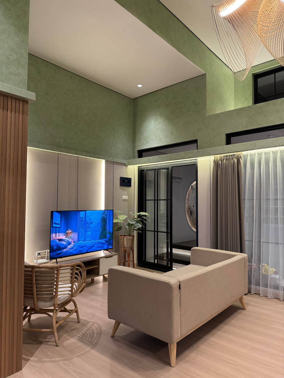 Mizu Haven, a calm and cozy home in Kota Baru Parahyangan. Designed with a mix of Japanese and Scandinavian styles, this peaceful retreat has a private pool and comfortable spaces for you to relax. Perfect for families or anyone looking for a quiet getaway. Unwind, recharge, and enjoy a refreshing stay!