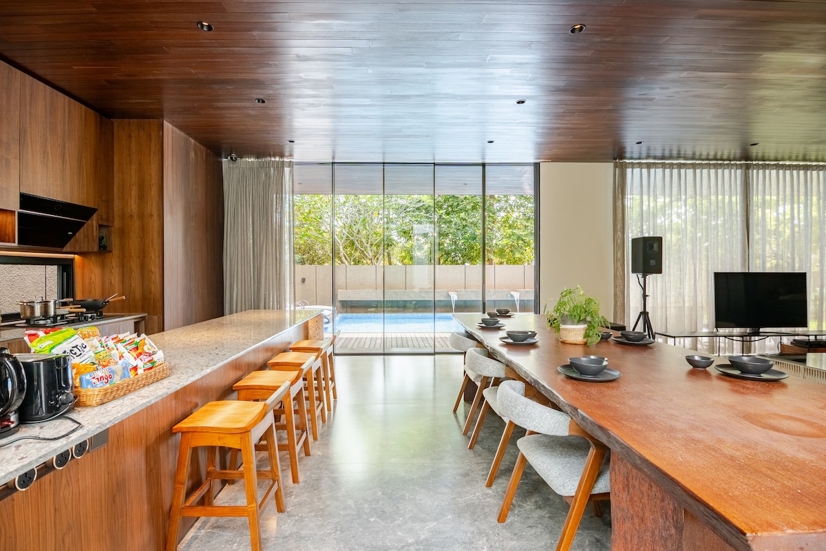 Hale Sentul offers a refined blend of creativity, comfort, and sustainability. Overlooking a golf course and surrounded by scenic trails, this artistic retreat features a charming mini garden and repurposed artworks as plant holders. Just a minute from Richie Lakehouse and 6 minutes from AEON Mall, it’s the perfect escape for relaxation and inspiration. Max capacity: 20 guests—ideal for a sophisticated, eco-conscious getaway.