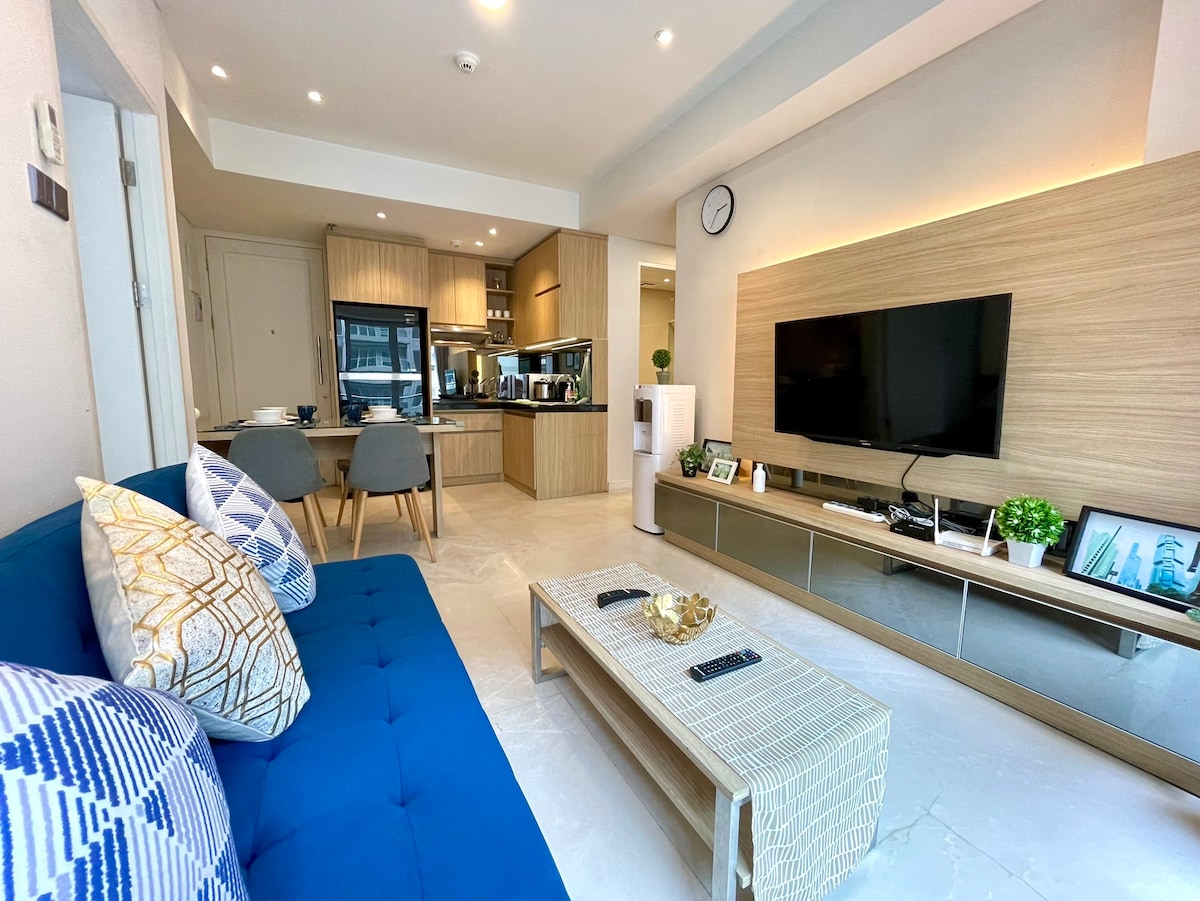 Located in the center of Bandung city, our apartment is flanked by 2 big malls, BIP Mall & BEC Mall, very easy to get anything on a walking distance. You will enjoy the sunset of Bandung city at a height of 21st floor Free Fast WiFi, with 55 Inch 4K Smart TV, with Premium membership of Netflix, Disney+, HBO Max, IQIYI, Viu You will sleep on a King Size, King Koil mattress, plus 2 extra floor mats Kindly note that parking —both for motorcycles and cars— is cashless only