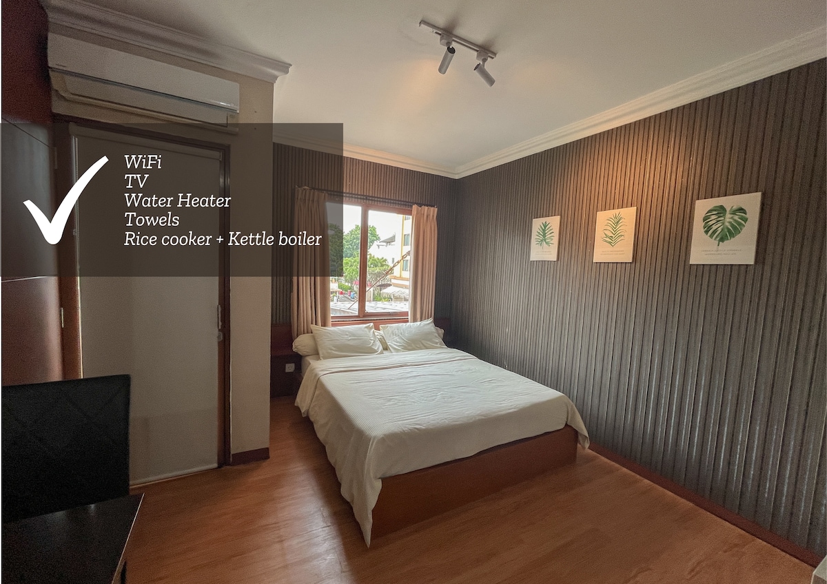 Welcome to our cozy OAOA studio apartment with a balcony to enjoy the city & mountain view! Located in strategic area only 5 mins walk to the famous Dago street, 10 - 15 mins walk to Sabuga jogging track and Bandung Zoo, ca. 35 mins to floating market Lembang by car. We accommodate up to 3 guests. We have a queen size bed 200x160 cm & a sofa bed 180x75cm, a bathroom with shower & water heater, kitchen set, and smart TV. Please read our terms and conditions before making a reservation.
