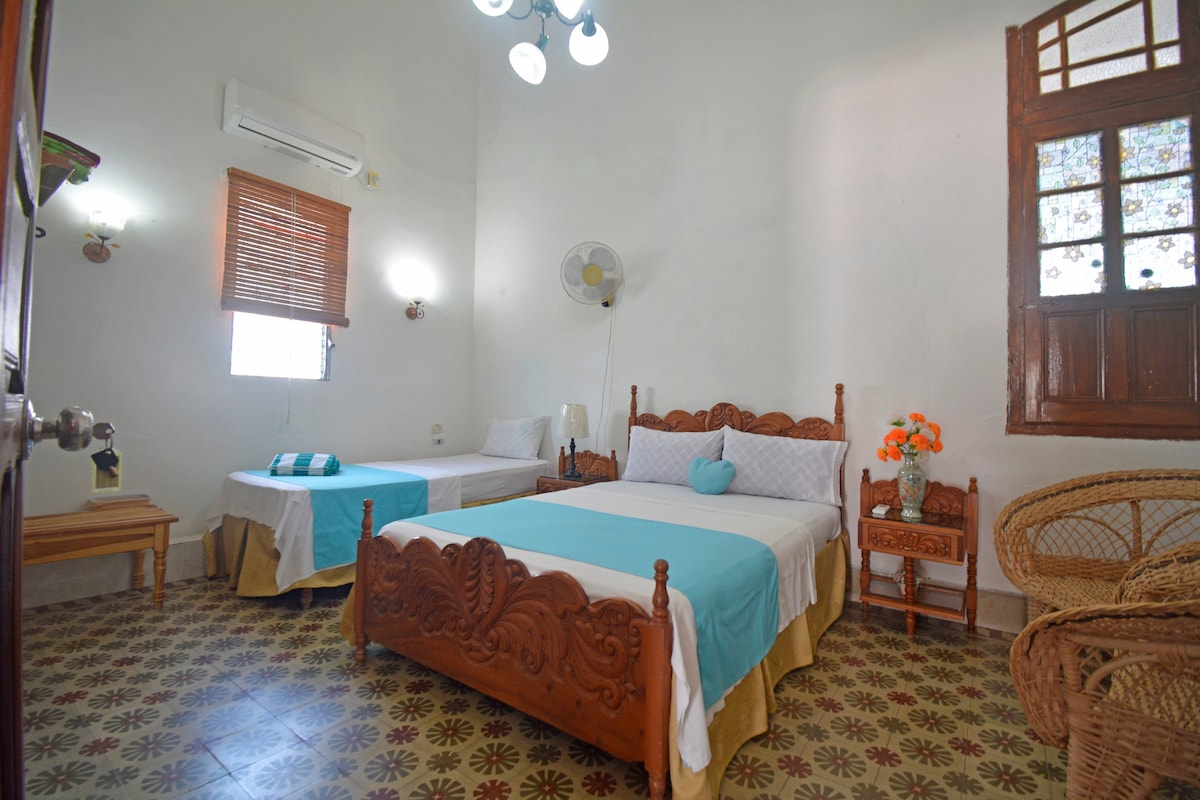 Es una habitación privada con todas las comidades y baño independiente. Muy cerca del mar y la zona náutica de Cienfuegos, específicamente en Punta Gorda, área declarada Patrimonio Nacional por el valor de la arquitectura doméstica y hotelera. También tiene área de juego para los niños y zona de trabajo. Tenemos generador eléctrico y así evitar los cortes habituales en Cuba. Ofrecemos excursiones, desayunos, cenas y servicios de taxi.