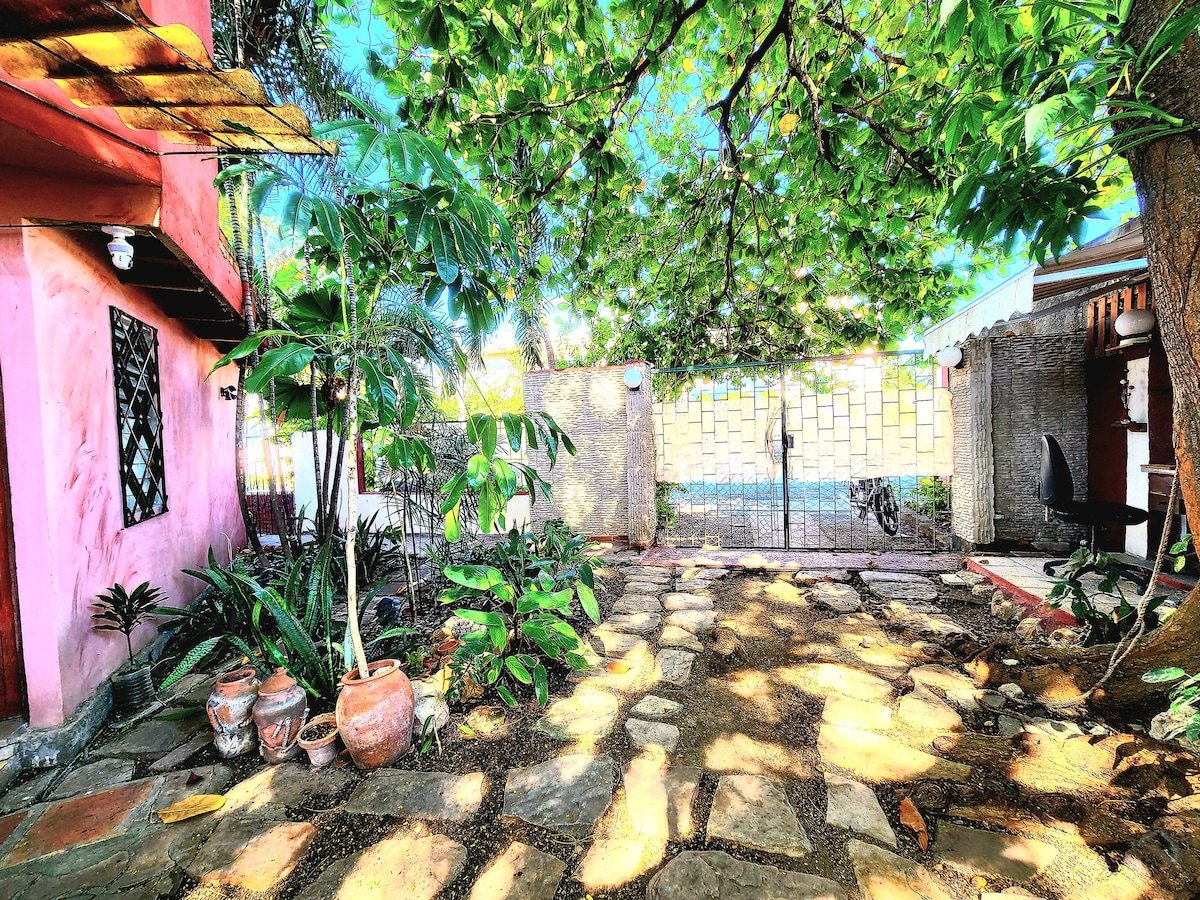 Das renovierte Haus im idyllischen Viertel La Juanita liegt zu Fuss 3 Minuten zum Viazul Bahnhof und 12 Minuten bis zum Meer und Stadtzentrum. Die casa ist sehr geraumig mit offenem Patio mit Hollywoodschaukel im Eingangsbereich, zwei Aufenthaltsraumen mit Wohnkueche und Garten im Hinterhof. Von Mai bis Juli haben wir eigene Mangos. Wer Zeit hat kann mit Opa Paco Kaffee rösten und dann verkosten.