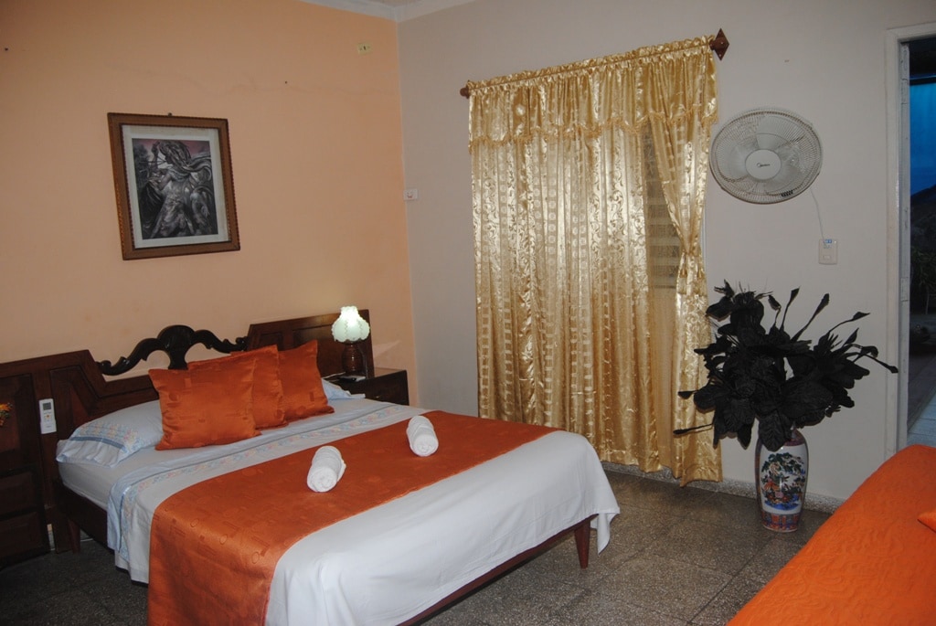 Casa-apartamento en el centro de la ciudad, con entrada independiente. Corriente eléctrica 24 horas. Sala, cocina-comedor, dormitorio amplio, climatizado, ventilador, ventanas amplias con luz natural, con dos camas matrimoniales confortables, baño privado con agua caliente las 24 horas. Terraza y amplios espacios al aire libre. Acceso a señal de Wifi desde su habitación y la terraza. Se ofertan desayunos y cenas si el huésped lo solicita.