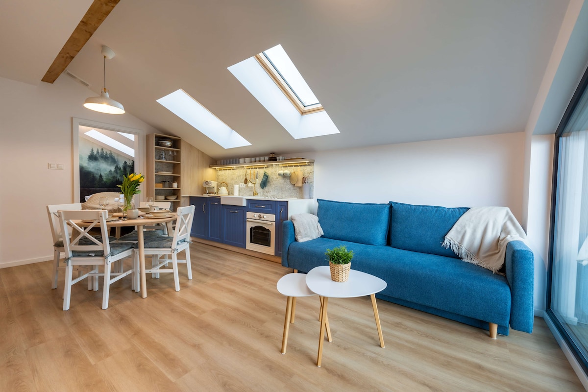 Kameralny a zarazem funkcjonalny i przytulny apartament z łazienką dla maksymalnie 4 osób urządzony z góralską nutą wyposażony w TV i WIFI z widokiem na góry. Salon zaopatrzony miedzy innymi w sofę 2 osobową z funkcją spania i w aneks kuchenny z pełnym wyposażeniem i lodówką. Sypialnia 2 osobowa, łazienka z kabiną prysznicową. Z okiem widok na góry.