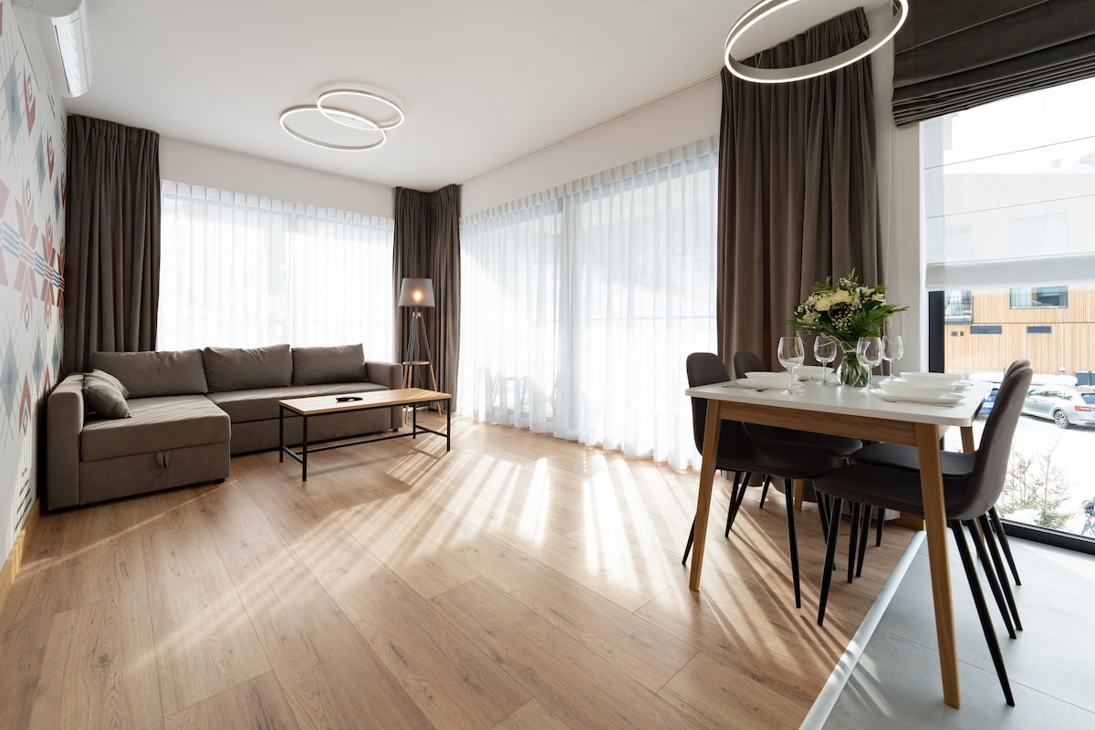 Nowoczesny apartament w centrum Ustronia – 50 m² komfortu, zaledwie 150 m od malowniczych bulwarów nad Wisłą, 50 m od amfiteatru i 700 m od ścisłego centrum miasta. ✅ 75-calowy TV ✅ Klimatyzacja i rolety przeciwsłoneczne ✅ Pralko-suszarka ✅ W pełni wyposażona kuchnia ✅ Szybki internet (światłowód) ✅ Spokojna okolica z widokiem na zieleń To idealne miejsce na wypoczynek, romantyczny weekend lub aktywne zwiedzanie Beskidów.
