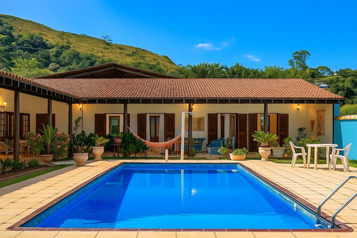 Curta com toda a família em alto estilo Casa térrea confortável em amplo jardim com piscina Conforto e sossego a 5 minutos caminhando até a bela e calma praia das Cigarras - São Sebastião Decoração aconchegante, cozinha equipada, área gourmet e churrasqueira 2 quartos aconchegantes para 6 pessoas Suíte com cama de casal e quarto com camas solteiro + camas auxiliares e 2 banheiros Ar-condicionado, TV e WIFI de alta velocidade Roupa de cama e banho para 6 pessoas