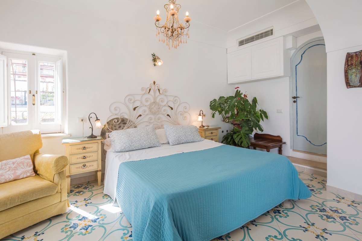 Suite in villa ,con vista mozzafiato sul mare,situata sulla Costa Amalfitana,fra Positano e Amalfi, vicinissimo ai famosi sentieri del trekking ( Sentiero degli Dei, Valle delle Ferriere, etc.etc......) ,parcheggio incluso nel prezzo.Alla casa si accede mediante una breve scalinata di sessanta scalini.