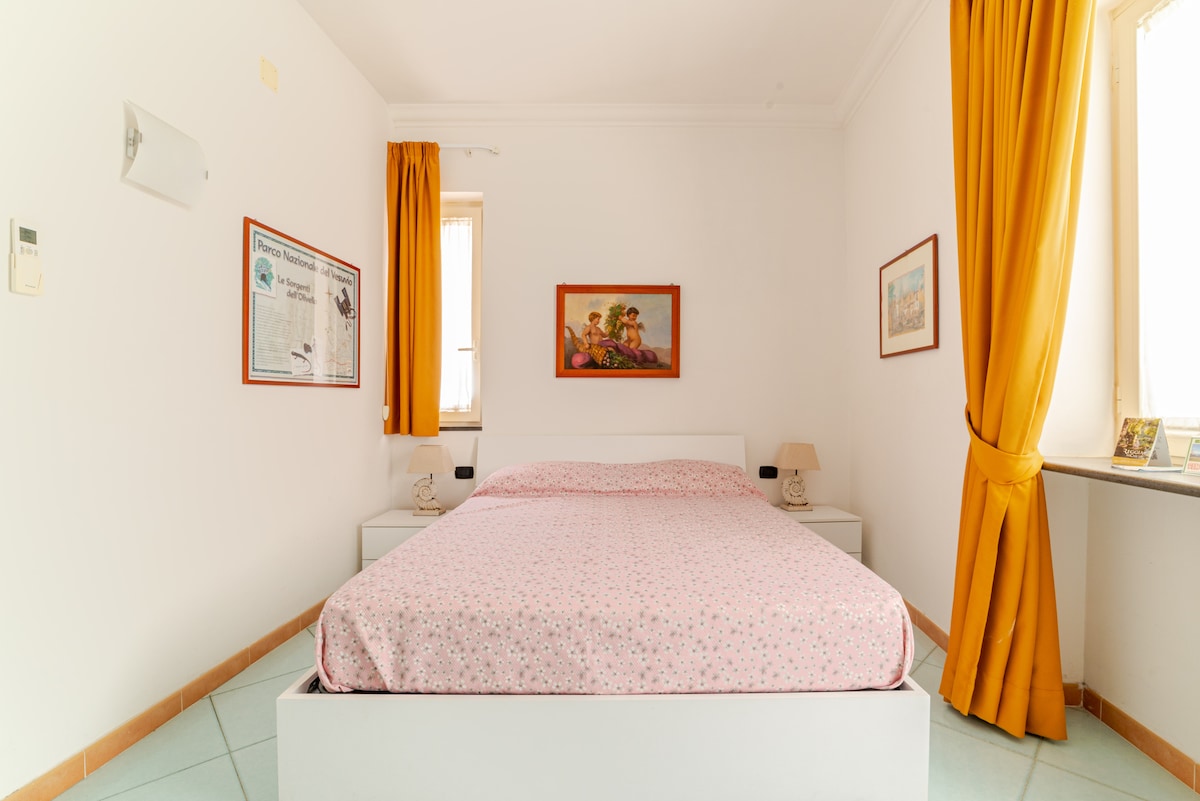 Piccola e tranquilla camera matrimoniale con bagno privato interno e patio. Completamente indipendente, si trova all interno di un delizioso condominio con giardino fronte mare. La camera è ricavata da un ex fienile, con soffitti in pietra esposta ad arco. La suite si trova a circa 400 metri dal mare e a 1 km dal porto di acciaroli.