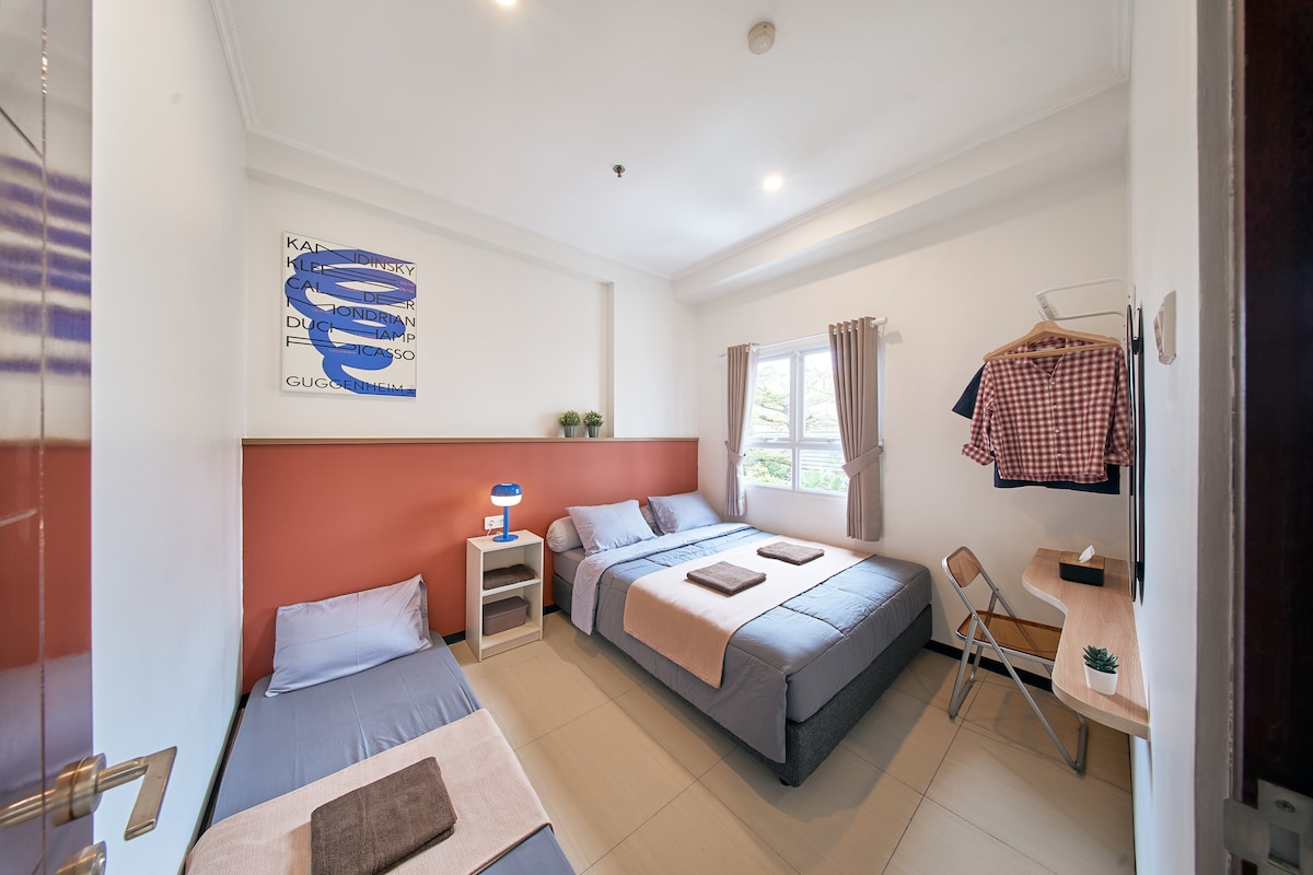 Make some Unique memories at this homey and family-friendly Apartment in Gateway Pasteur. Spacious 2 bedrooms to comfortably accommodate medium size of family or few friends holidays in Bandung🏡❤️ Located in the heart of Bandung City, very near from Toll Pasteur exit Comfortably fit 7 to 8 people maximum, this included children. 2 bedrooms and 1 Bathroom only Surrounded by Cafe, Resto, Mini Market Parking would be Paid Parking in the Parking of Apartment (hourly 3k, and overnight 40k)