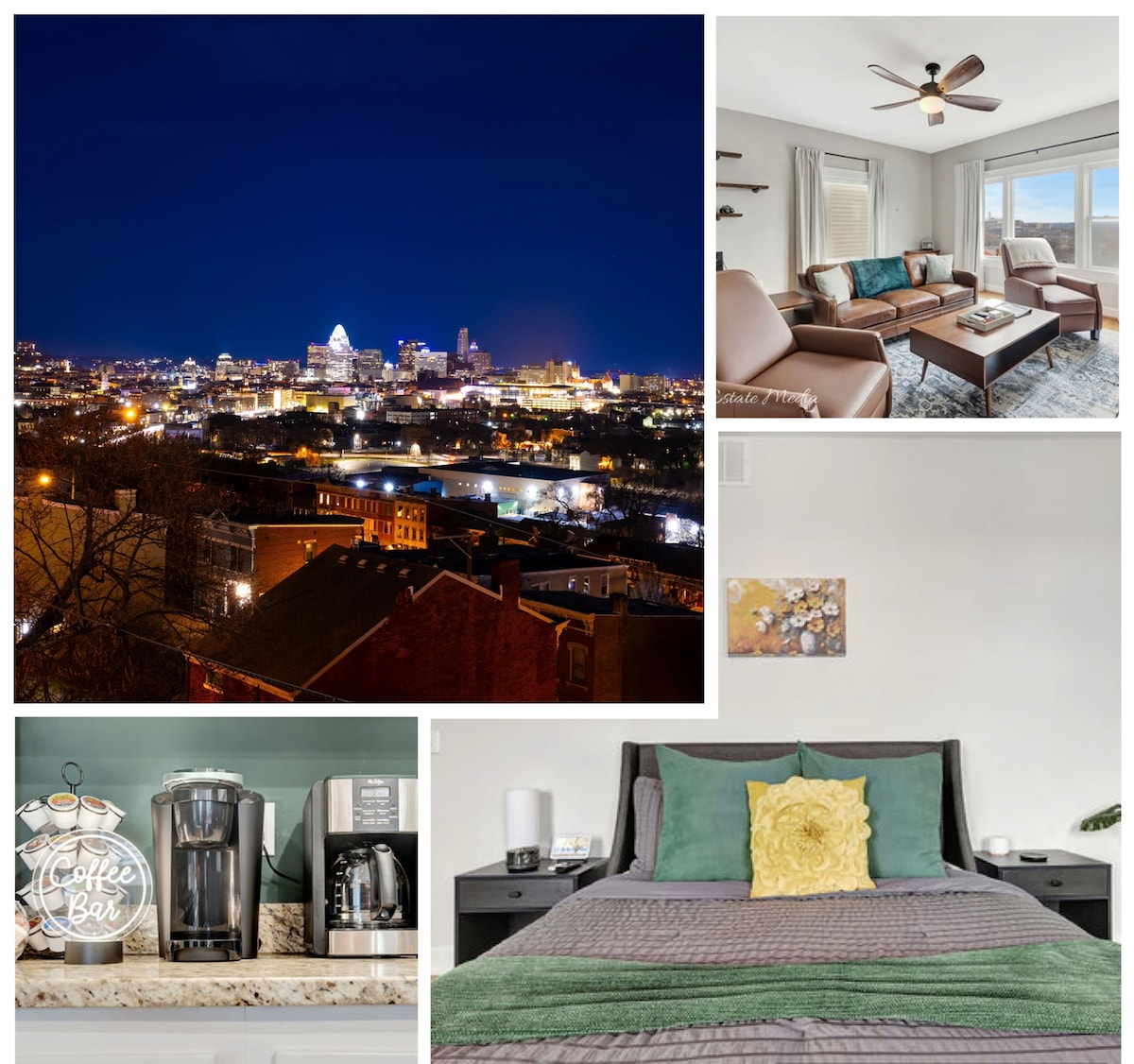 Spectacular View of Cincinnati in Boutique-Hotel style Full Home designed by Award-Winning Designer. • No downtown Airbnb has this much • On Quiet/Safe Street • Central Location • Security camera at entrance • Programmed lock changed after each guest. • One of "The 7 Coolest AirBnBs in Cincinnati" by Cincy Refined • Walk/Bike/Scooter to Downtown/Dining/Shopping, Nightlife, UC, & Reds/Bengals • 20 minutes to Airport • Quick access to I-71 & I-75 • Incredible Private Indoor & Outdoor Spaces