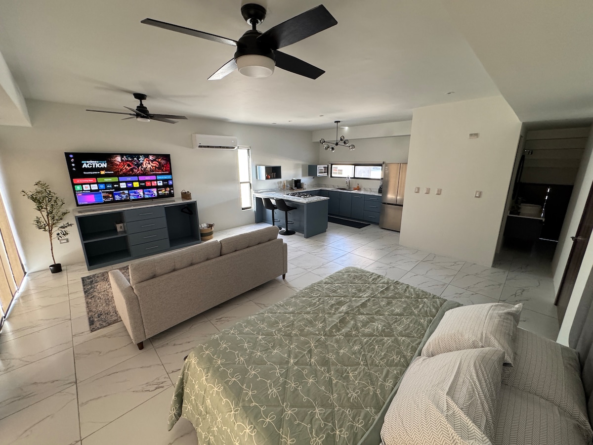 El Apartamento se encuentra cerca del consulado americano y avenidas principales, a dos cuadras de 2 supermercados, plaza bonita, a 5 min. de plaza las misiones, parque central , en punto medio del aeropuerto y la central camionera, nuestra colonia es agradable y tranquila, el departamento "Todo en uno" cuenta con una cama Queen, smart tv, cuenta de Disney, star+Apple tv y Amazon prime, climatizado con minisplit, perfectamente diseñado para tu comodidad, ideal para tus tramites y descanso!