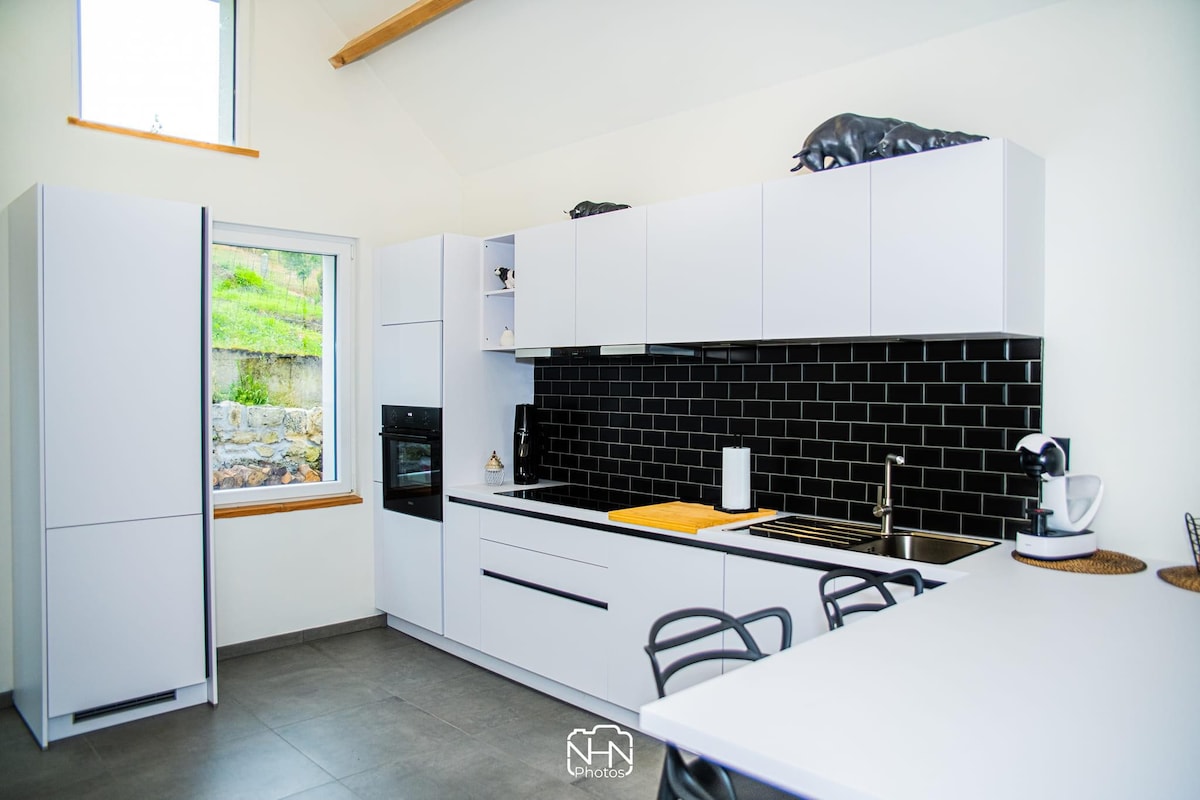 Bienvenue à La Grange d'Haversin ! Notre studio spacieux offre un cadre lumineux et cosy avec vue sur la campagne. Profitez d'une chambre douillette, d'une salle d'eau moderne et d'une cuisine super équipée. Détendez-vous sur la terrasse privée avec barbecue et explorez notre jardin paisible. Ménage de fin de séjour et linge inclus.