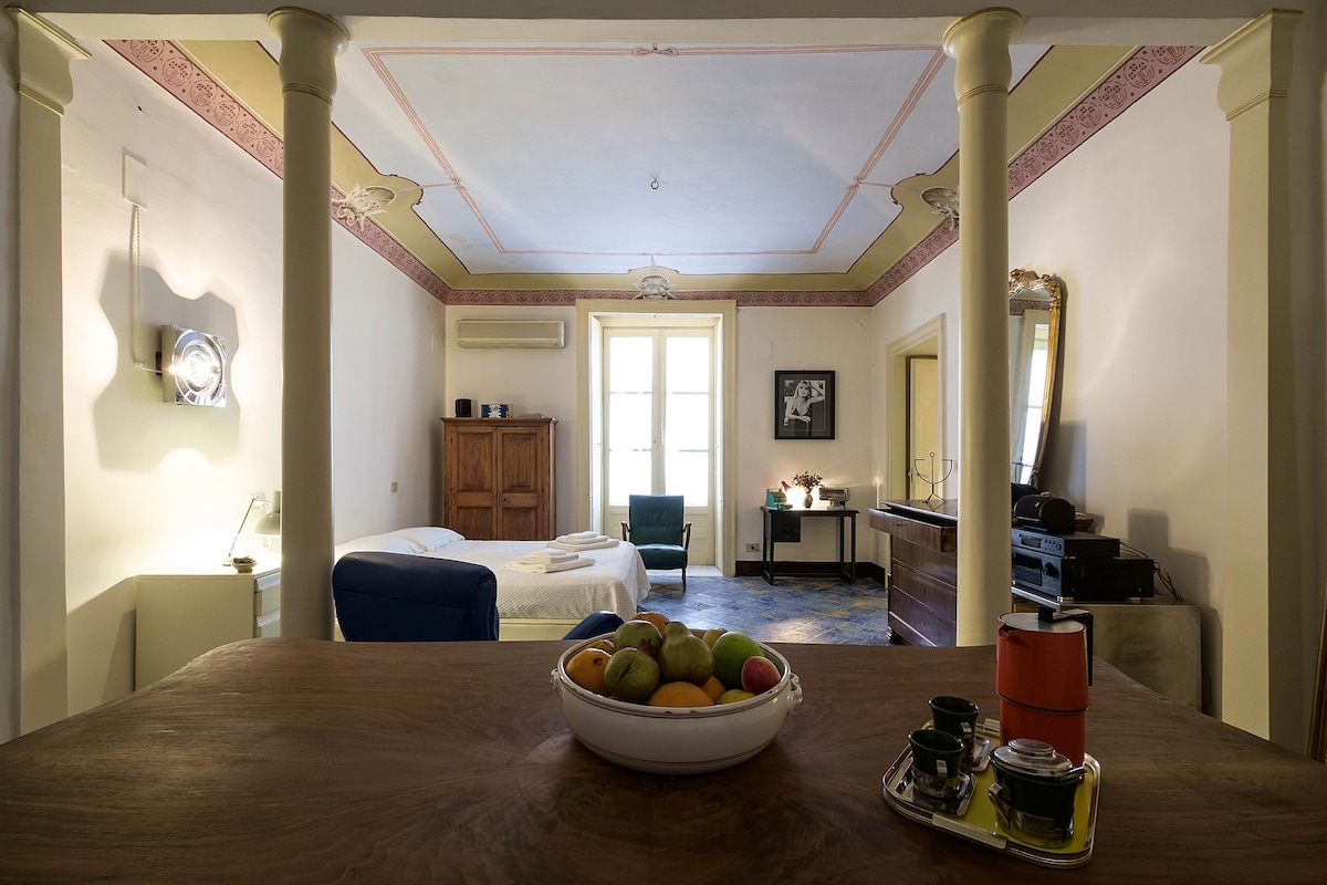 Super centrally-located apartment at the top of a palazzo in the heart of Kalsa, the trendiest neighbourhood in Palermo historic centre. If you manage to make it up the 4th floor of steep stairs (no lift), it will be worth it! The flat has been completely renovated by me, Roman architect who after 10 years of practice in London has decided to move to Palermo and open a studio here. The flat has 2 beautiful terraces, 1 bedroom 1 large kitchen living room, a study and 1 bathroom.