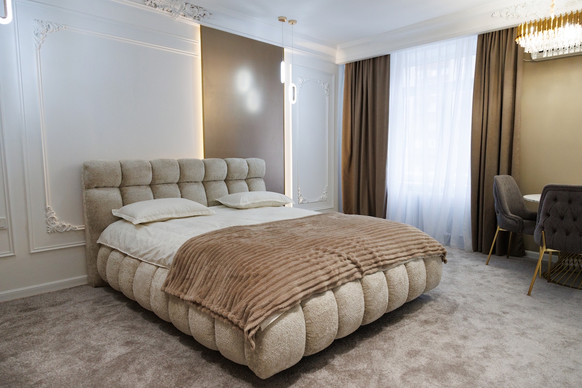 Enjoy a relaxing stay in the heart of Chișinău, in a modern and welcoming apartment. Its central location offers quick access to cozy cafés, restaurants, parks, and city attractions. We welcome you with: • Impeccable cleanliness • Fresh linens and immaculate towels • Bathroom essentials (gel, shampoo, toothbrushes) • High-speed Wi-Fi (500 MB/s) • Smart TV with Netflix • Independent self check-in The apartment has two bedrooms and a living room, accommodating up to six guests.