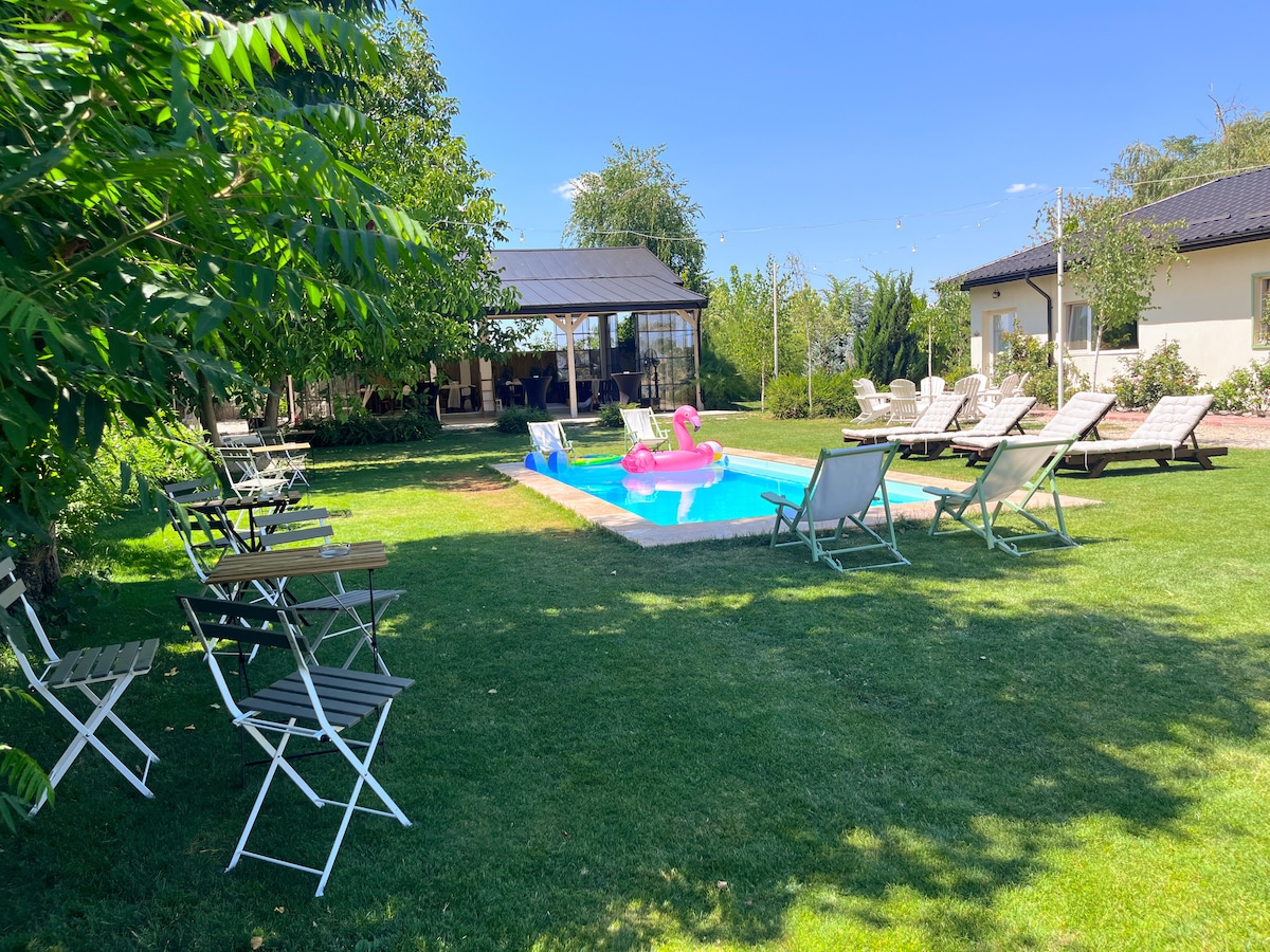 Our garden is easily accessed from National Road 1(DN1) in Ciolpani. The pool is 6x3x1,5 meters, the big gazebo has 110 square meters and can accomodate up to 64 persons at chairs and tables leaving enough room for dancing and placing the food inside in case of bad weather. Price listed here is for accommodation of max small parties up to max 20 people including accommodation of up to 8 persons. For larger parties please send info on no of persons as a request. Parties must end at 12 at night.