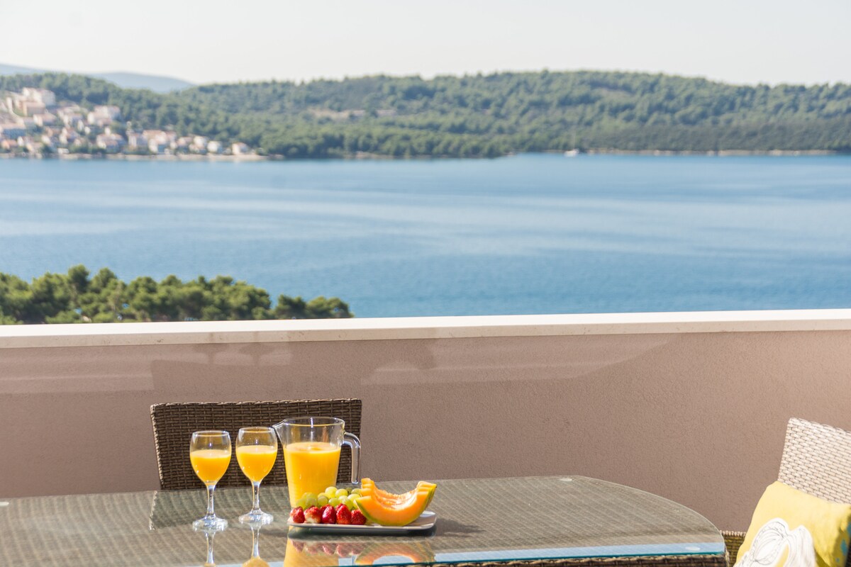 Royal is new, modern & luxury renovated apartment with jacuzzi, 50 meters away from beach. Has 50 square meters and 30 square meters terrace. Comes with 2 bedrooms, a living room, a fully eqipped kitchen with a dining area, bathroom with great shower, barbecue facilities, garage(1 car) , flat-screen TV in every room and free wi-fi. Offers a big terrace with open sea view on surrounding islands. Diving can be enjoyed nearbly. Trogir is 5 km away and Split airport 8 km from the acommodation.