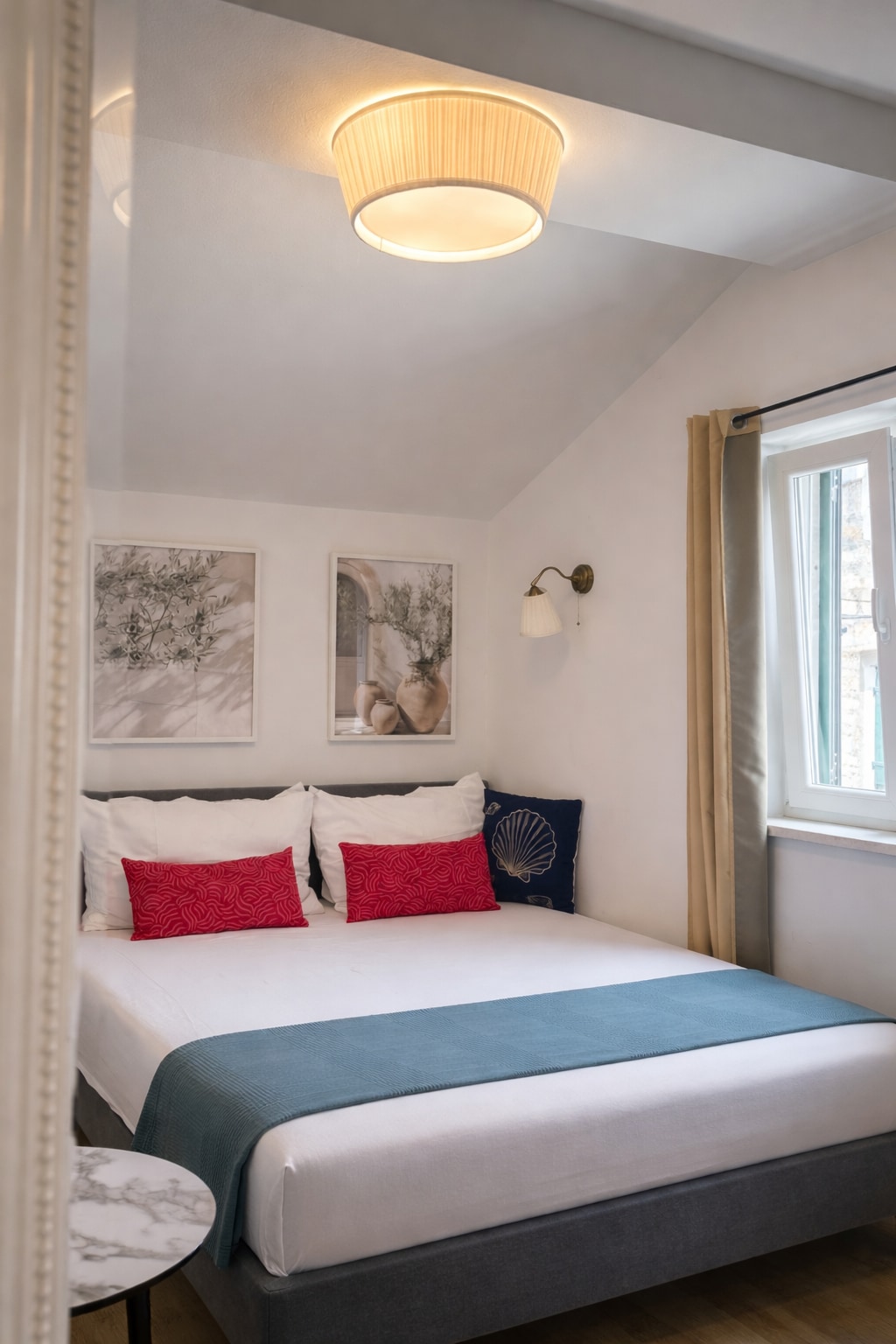 After a rejuvenating sauna session, descend an urbane spiral staircase and read a book by the fire. This apartment captivates by way of its posh furnishings, exposed wood beams, and unique elements like a glass-floor walkway in a lofted bedroom. Just enjoy like an emperor in your own! Pre room Living room/kitchen Big bathrom with 3 person sauna gallery space (28 m2) with master bad and extra bad Toilet working space with table and 2 extra size windows Glass bridge with window view to 1700 old palace Living room Kitchen Lobby Bathroom Sauna Three big windows badroom toilet gallery floor 24/7 on whats ap The apartment has Diocletian roots and some of its original 1700-year-old architecture is still visible in its exposed stonewalls. The surrounding neighborhood is filled with historic sites, restaurants, and shops. If you come by car you must know that you are in the center of old town. Strong pedestrian zone. You have closest payable parking 100 meters away. I will give for free parking card to my guests for parking lot which is 800 meter away.