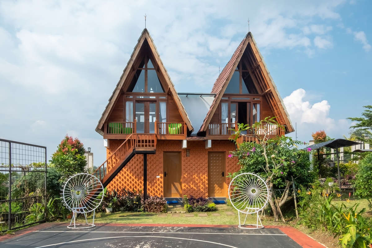乡村天景小木屋自然阳台度假屋@Puncak