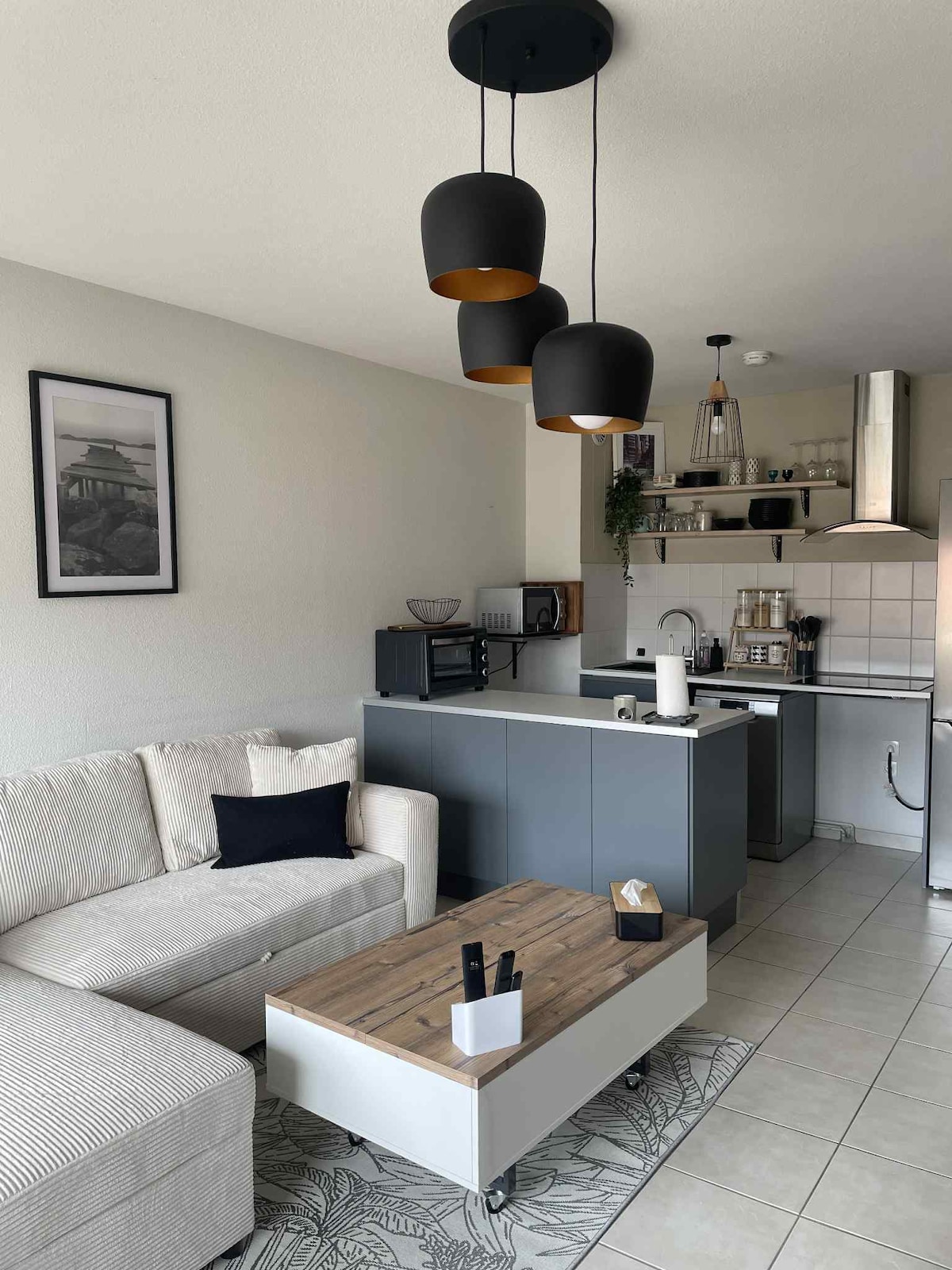 Studio chaleureux et moderne situé à proximité de multiples commerces et à 15 minutes à pieds du centre ville du Mans. Bienvenu dans mon appartement situé au 3ème étage avec ascenseur dans une résidence calme. Une place de parking privée dans la résidence est à votre disposition. Ce studio est composé d'un spacieux séjour avec une jolie cuisine ouverte équipée, avec café, thé et condiments mis à votre disposition. Il dispose également d'une salle de bain avec baignoire.